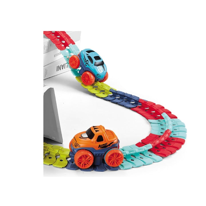 Pista este alcatuita din elemente mici colorate care sunt conectate folosind stifturi de blocare. Conectarea si separarea acestora va fi o activitate extrem de simpla pentru fiecare copil.