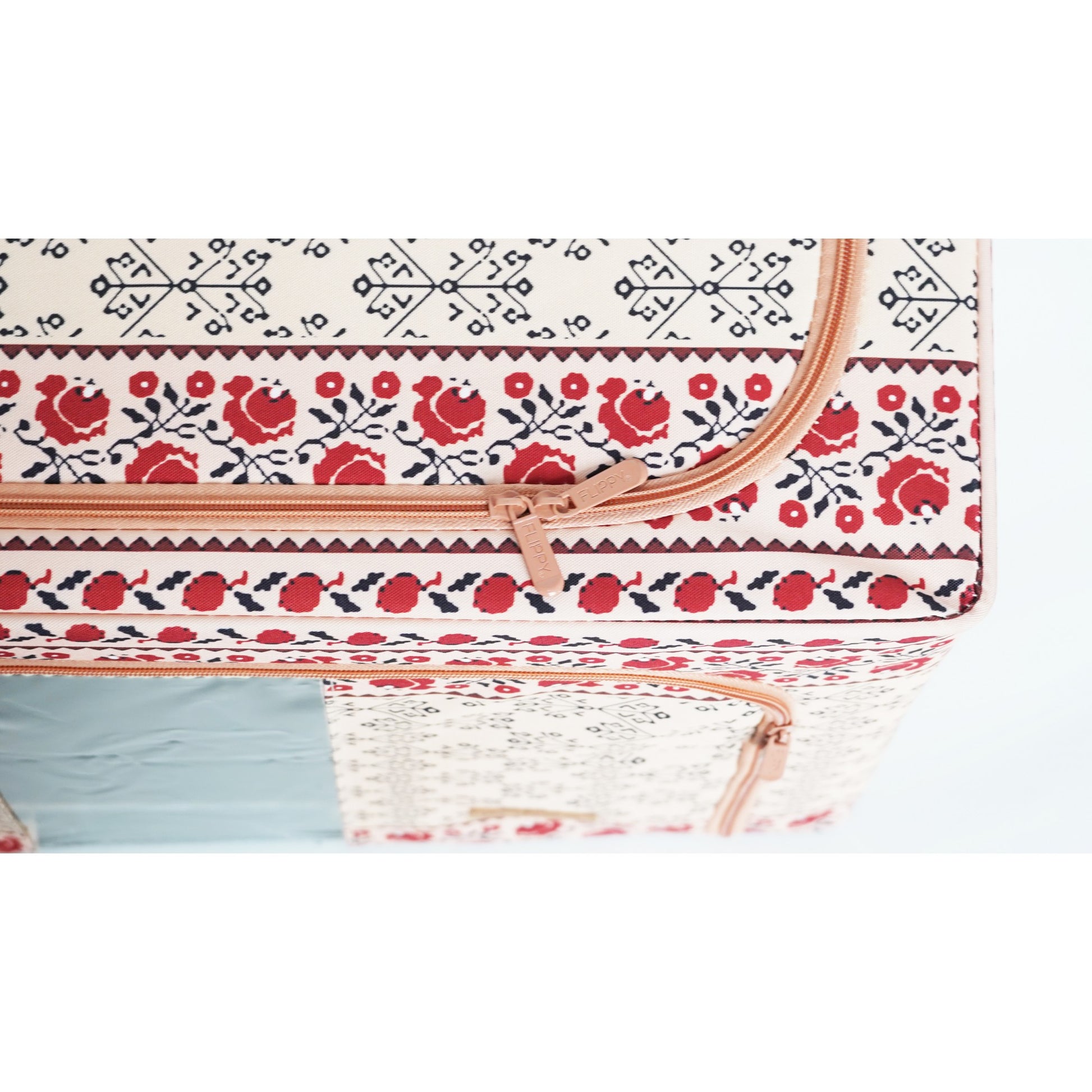 Cutie de Depozitare Pliabila, selexmo,100 L din Bumbac si In, 60X42X40 cm, Fereastra Frontala, 2 Usi de Acces cu Fermoar Bidirectional, Cadru Metalic, Suport Baza Stabil din Plastic, Motiv Traditonal Model 3