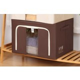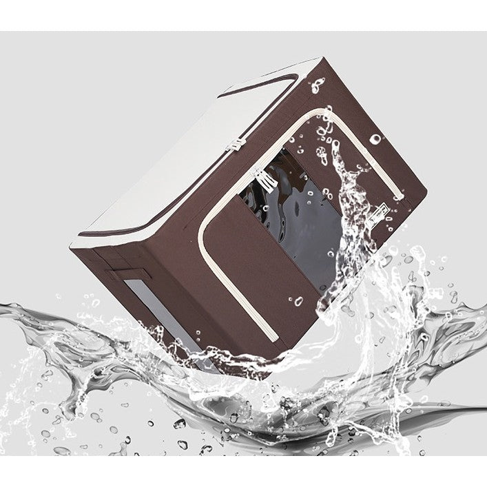 Cutie de Depozitare Pliabila, selexmo, Cu Fereastra si Fermoar Dublu, 66 L, Textil, 50x40x33 cm, Cadru Metalic, Impermeabila, Maro Premium