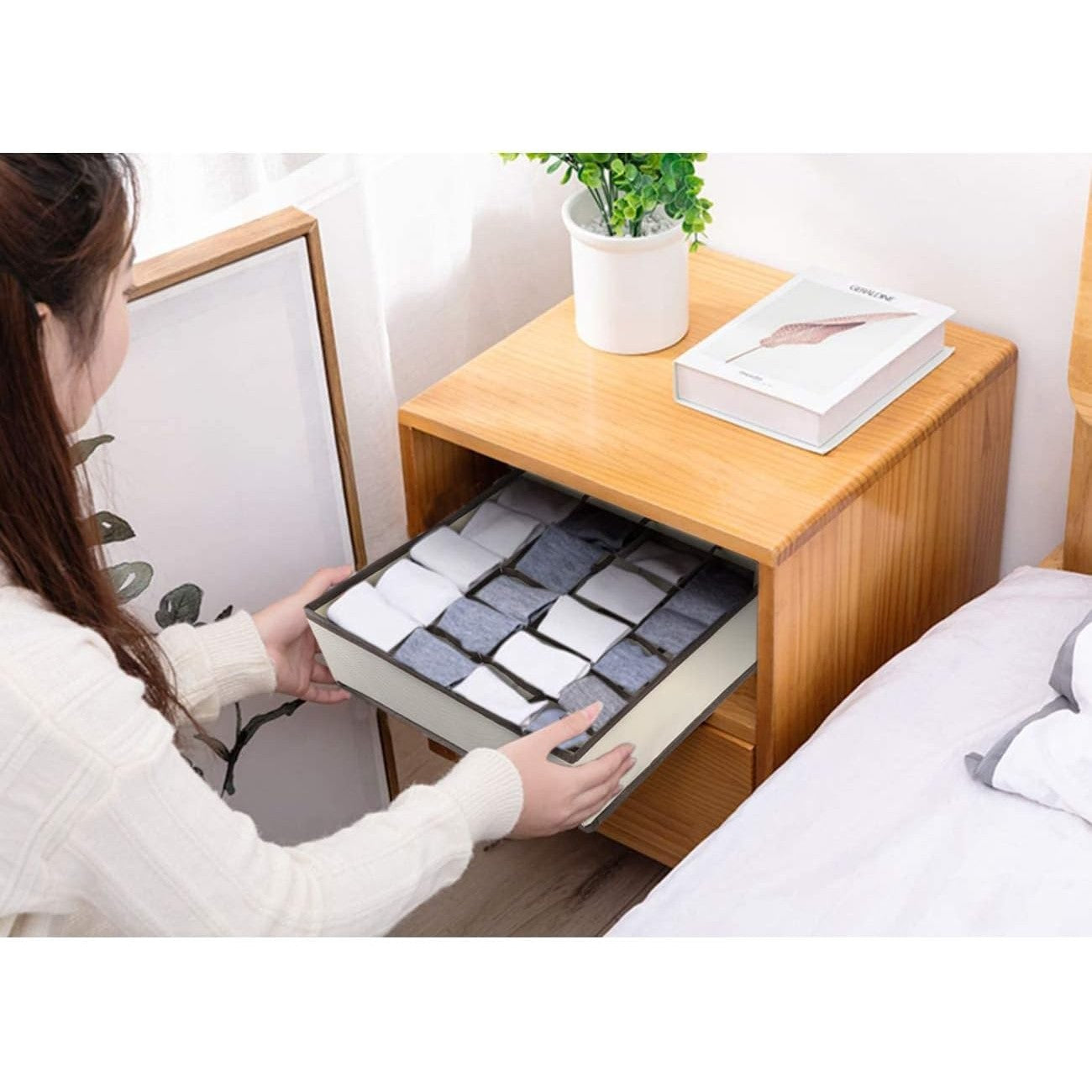 Cutie De Depozitare, selexmo, Pentru Lenjerie, Sosete Si Sutiene, Material Textil, 24 Compartimente, 32 x 32 x 10 cm, Culoare Bej
