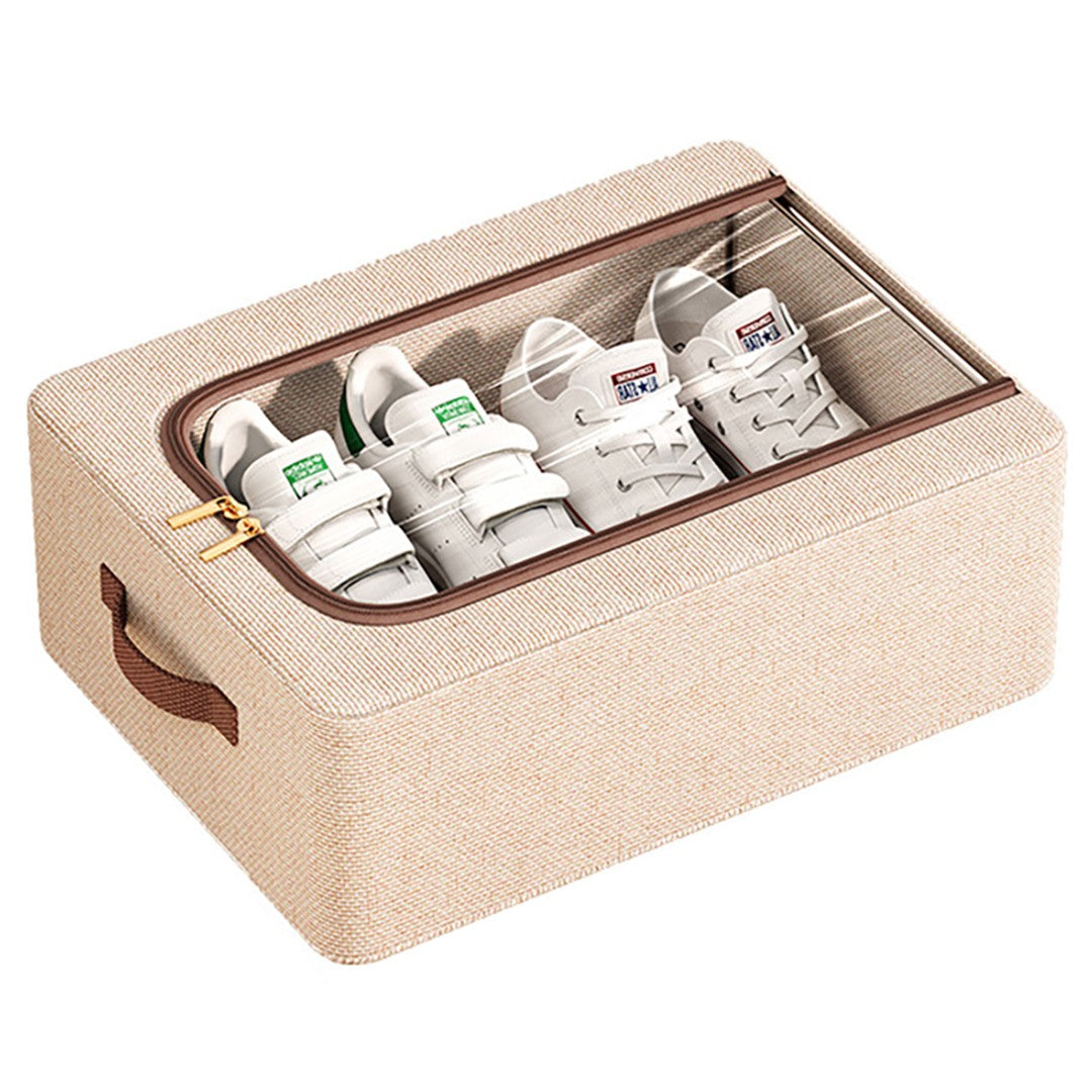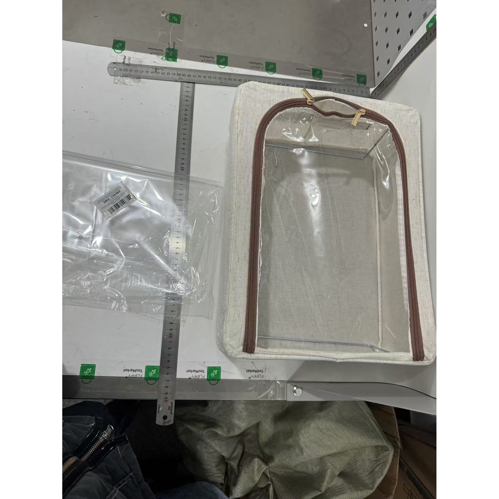 Cutie Depozitare cu Cadru Metalic, selexmo, pentru Incaltaminte, Haine, Lingerie, Fermoar Calitativ, Fereastra Transparenta, Manere Laterale, 40 x 30 x 15 cm Bej