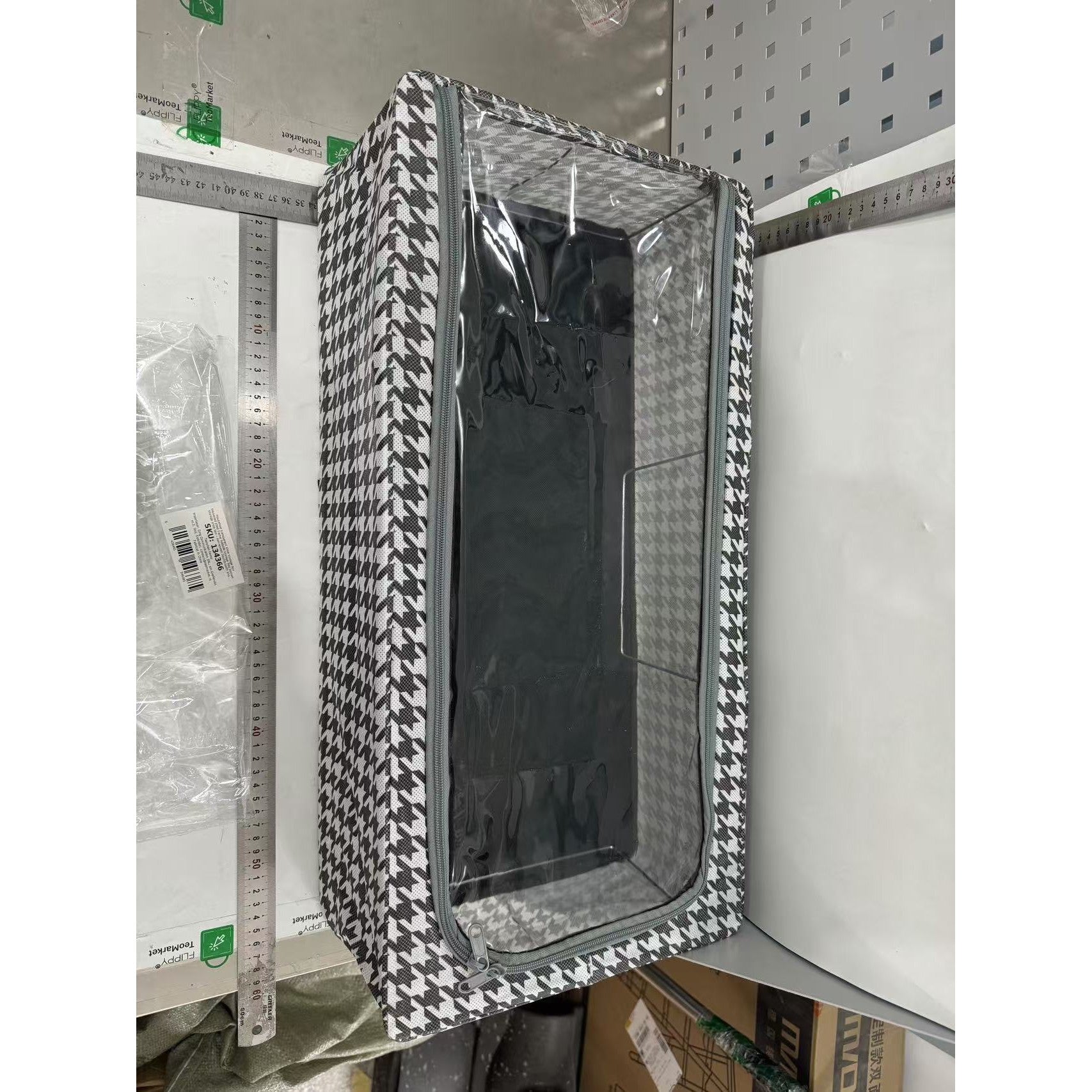 Cutie Depozitare cu Cadru Metalic, selexmo, pentru Incaltaminte, Haine, Lingerie, Fermoar Calitativ, Fereastra Transparenta, Manere Laterale, 60 x 30 x 16 cm, Alb Negru