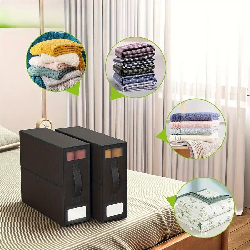 - Design modern și funcțional: Fereastra pătrată transparentă din față permite o vizualizare rapidă și ușoară a lenjeriei de pat depozitate, fără a fi nevoie să deschideți cutia.