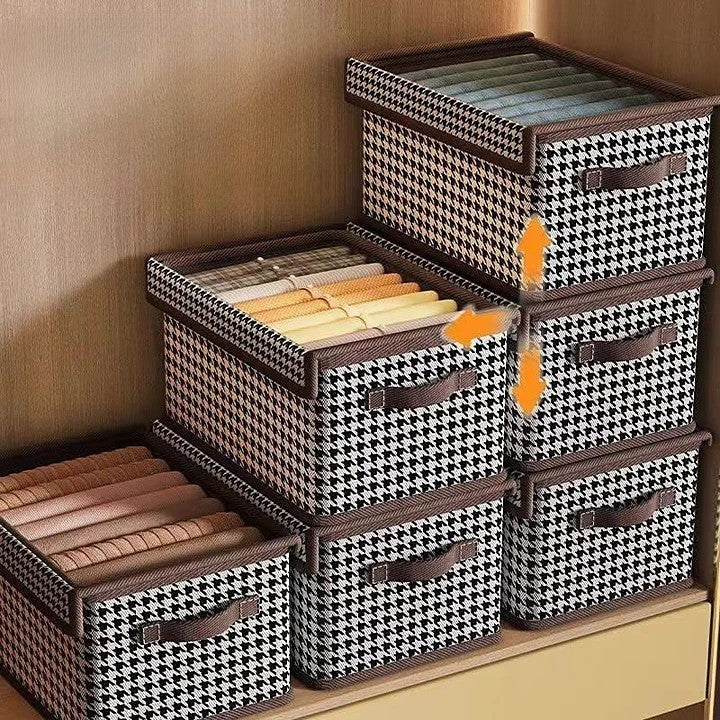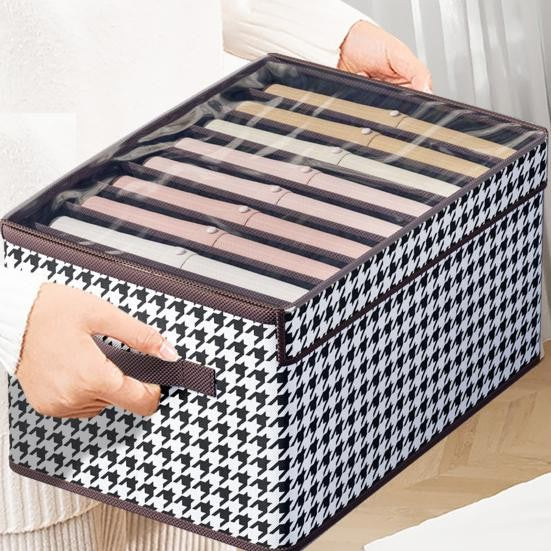 Păstrați-vă hainele și accesoriile organizate cu stil. Cutia de depozitare selexmo cu capac transparent și model în carouri este ideală pentru orice spațiu, oferind suprapunere ușoară și protecție împotriva umezelii și prafului.