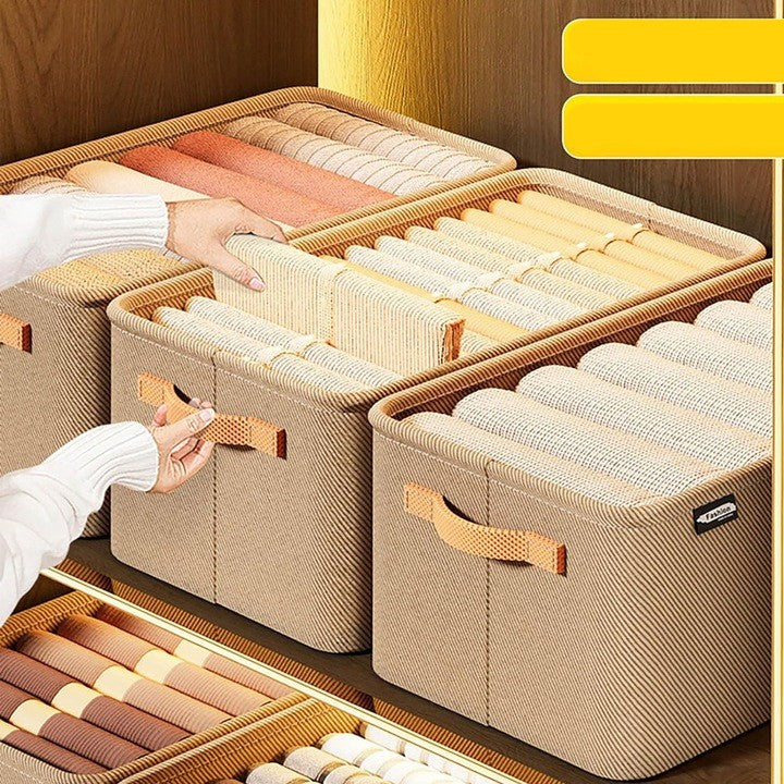 Cutie Depozitare selexmo, pentru Haine, lucruri, din Textil cu Cadru Metalic, Manere Laterale, forma Dreptunghiulara, 48 x 28 x 25 cm, volum 34 L Kaki