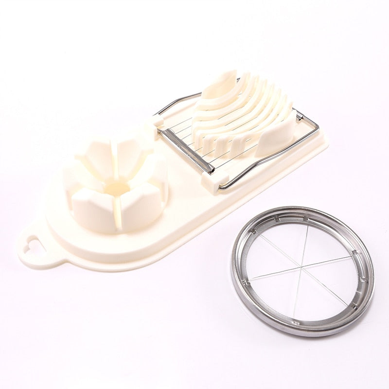 FELIATOR MULTIFUNCTIONAL PENTRU OUA, MOZZARELA, FRUCTE, 2 FORME DE FELIERE, AGATATOARE, 20 CM, ALB