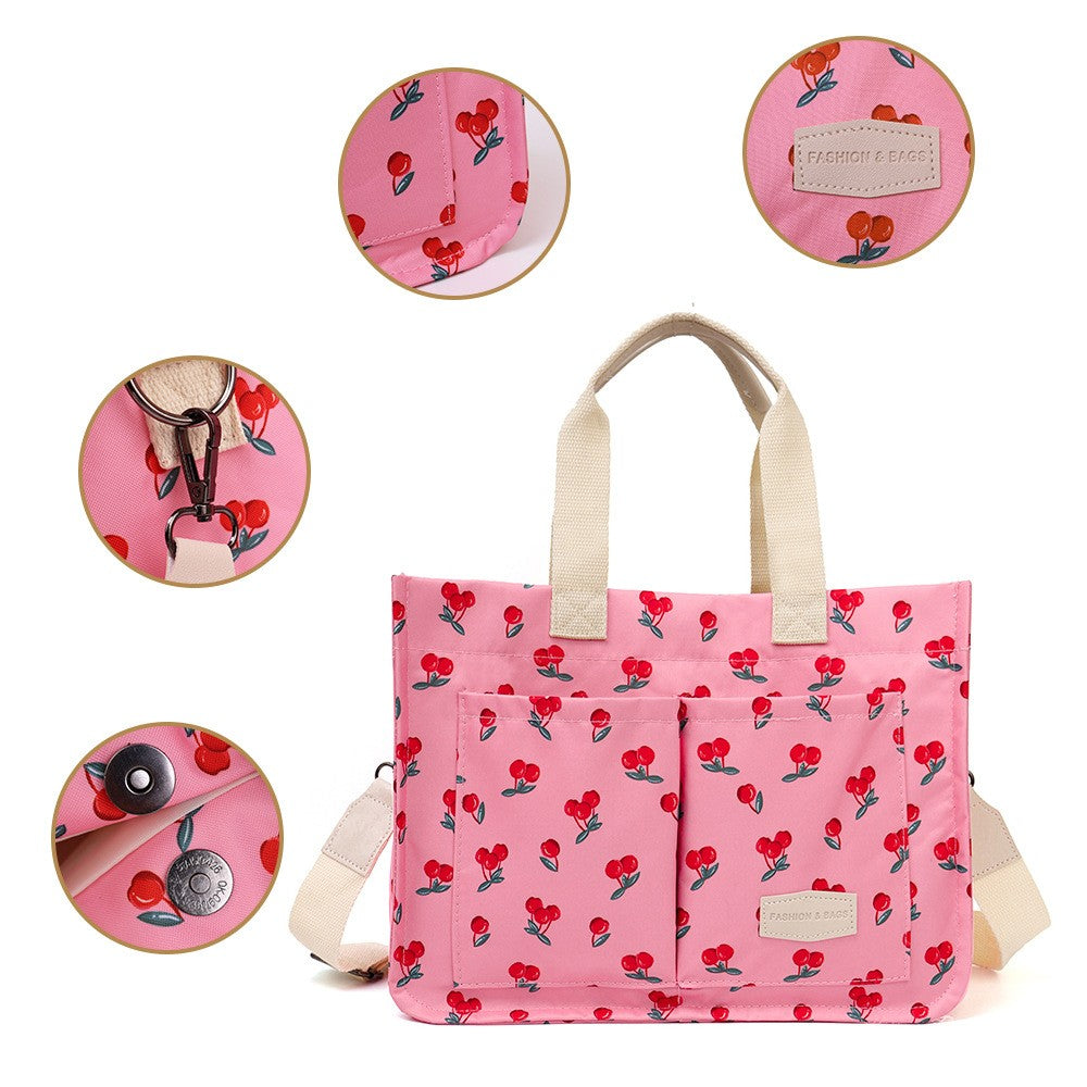 Geantă de Mână/Umar Multifuncțională selexmo, Imprimeu Cireșe, Roz