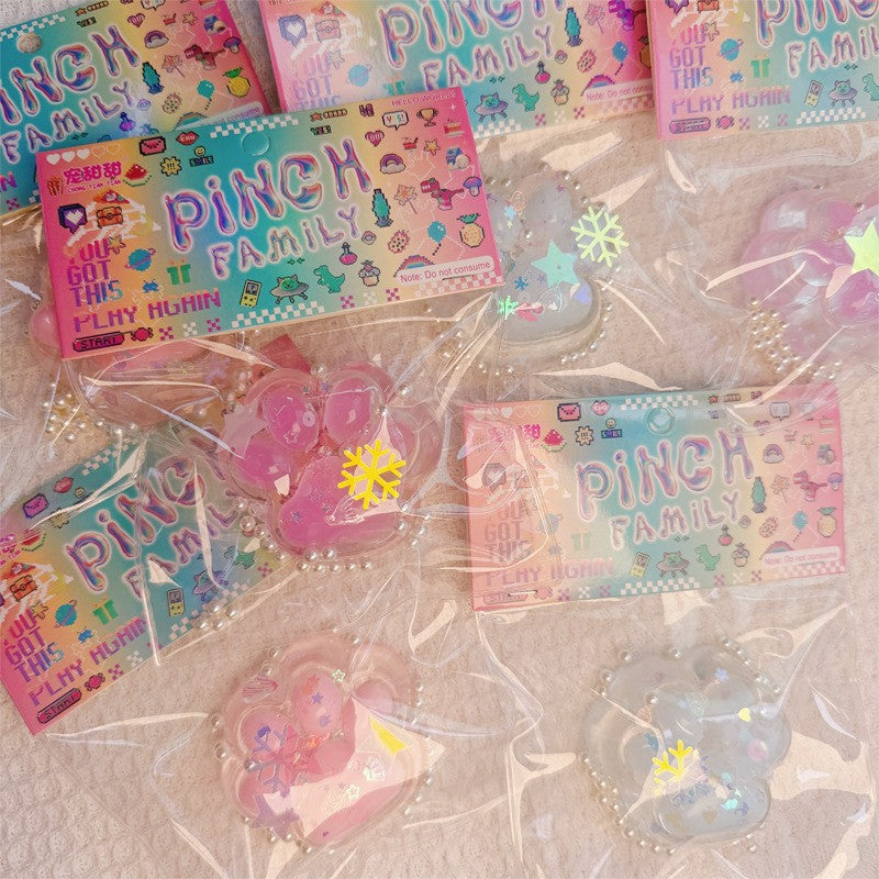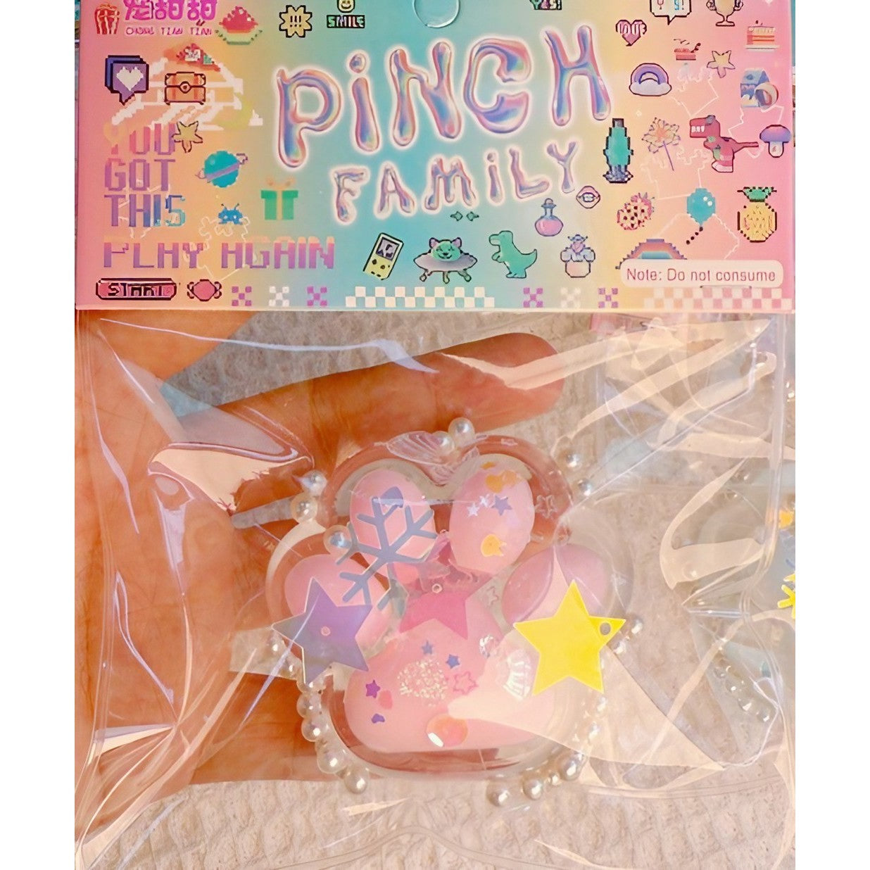 Jucarie Antistres Squishy, selexmo, cu Revenire Lenta, Squeeze Pinch Family, Model Labuta de Pisica, 6x5.5 cm, 70g, Ambalaj Transparent, Roz-Transparent