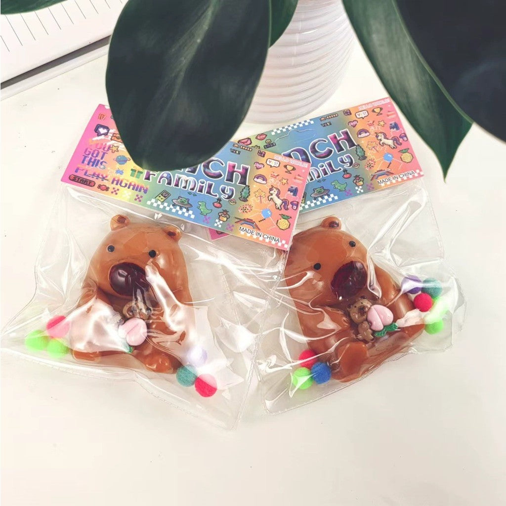 Jucarie Antistres Squishy, selexmo, cu Revenire Lenta, Squeeze Pinch Family, Model Urs, Ambalaj Transparent, 4.5 x 7.2 cm, Maro