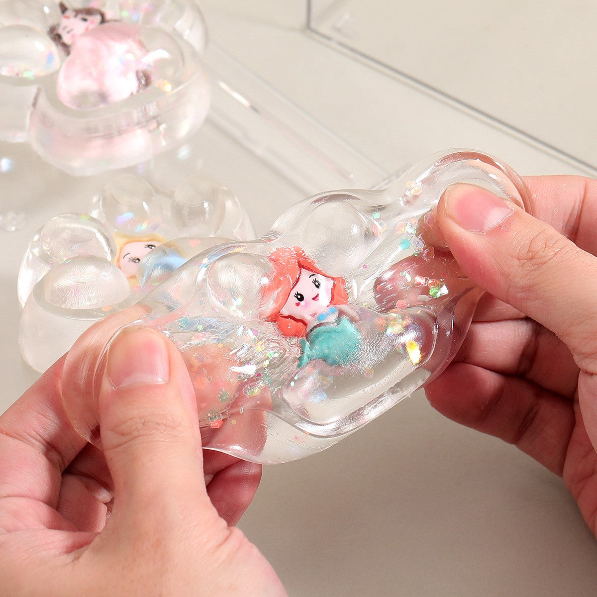 Jucarie Antistres Squishy, selexmo, Labuta de Pisica Pufoasa, cu Revenire Lenta, 7 x 6.5 cm, Model Printesa, Multicolor