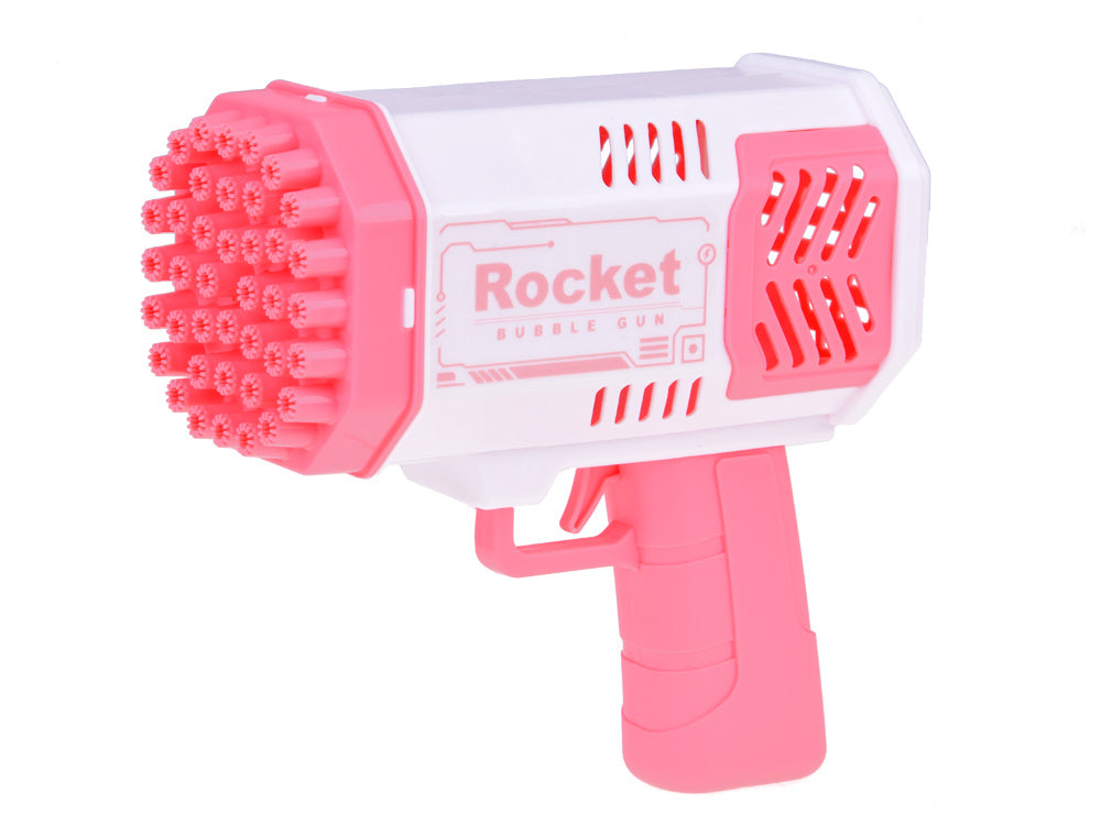 Aceasta este o mașină neobișnuită pentru crearea bulelor de săpun, deoarece nu are un recipient integrat pentru lichid. Așadar, cum se creează aceste minunate sfere curcubeu care se înalță spre cer? Este simplu! Tot ce trebuie să faci este să torni o cantitate mică de lichid inclus în set într-un bol roz și superficial și să înmoi partea din față a pistolului în el. Apoi, țintește și apasă trăgaciul. Un spectacol uimitor va apărea înaintea ochilor noștri! Forme sferice și strălucitoare vor zbura din cele 40 de găuri, stârnind bucuria copiilor! Deși și adulții vor fi foarte impresionați.