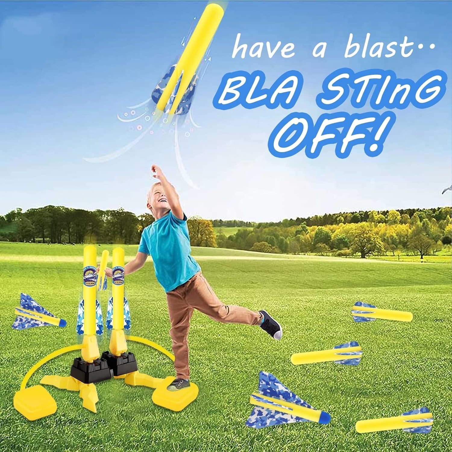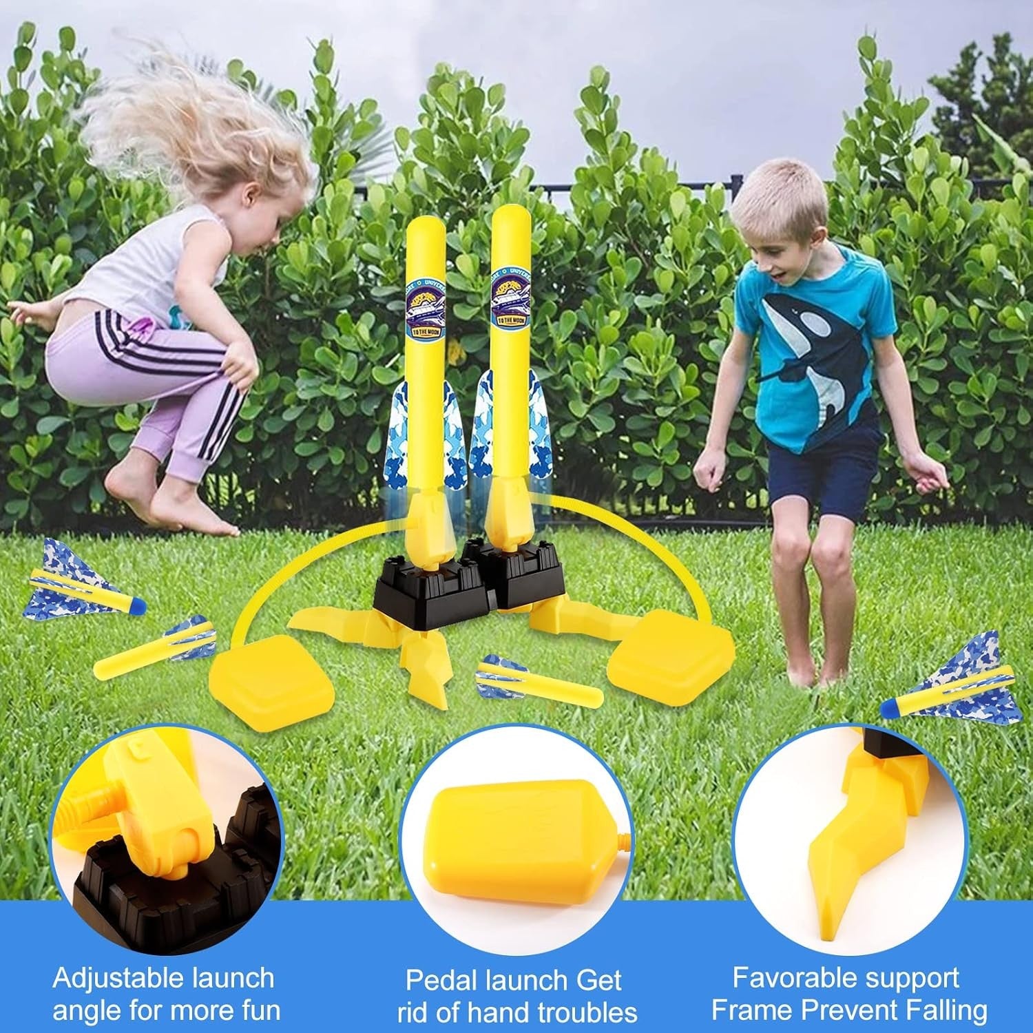 - UNA DINTRE CELE MAI ATRACTIVE JUCARII DE EXTERIOR - Atat fetele cat si baietii vor fi interesati sa se joace in aer liber cu acest lansator, si sa observe cat de sus poate ajunge. Lansator este dublu astfel ca doi copii, sau un copil si un parinte se pot juca in acelasi timp, si pot apasa pedala cat mai tare pentru ca racheta sa fie proiectata cat mai sus.