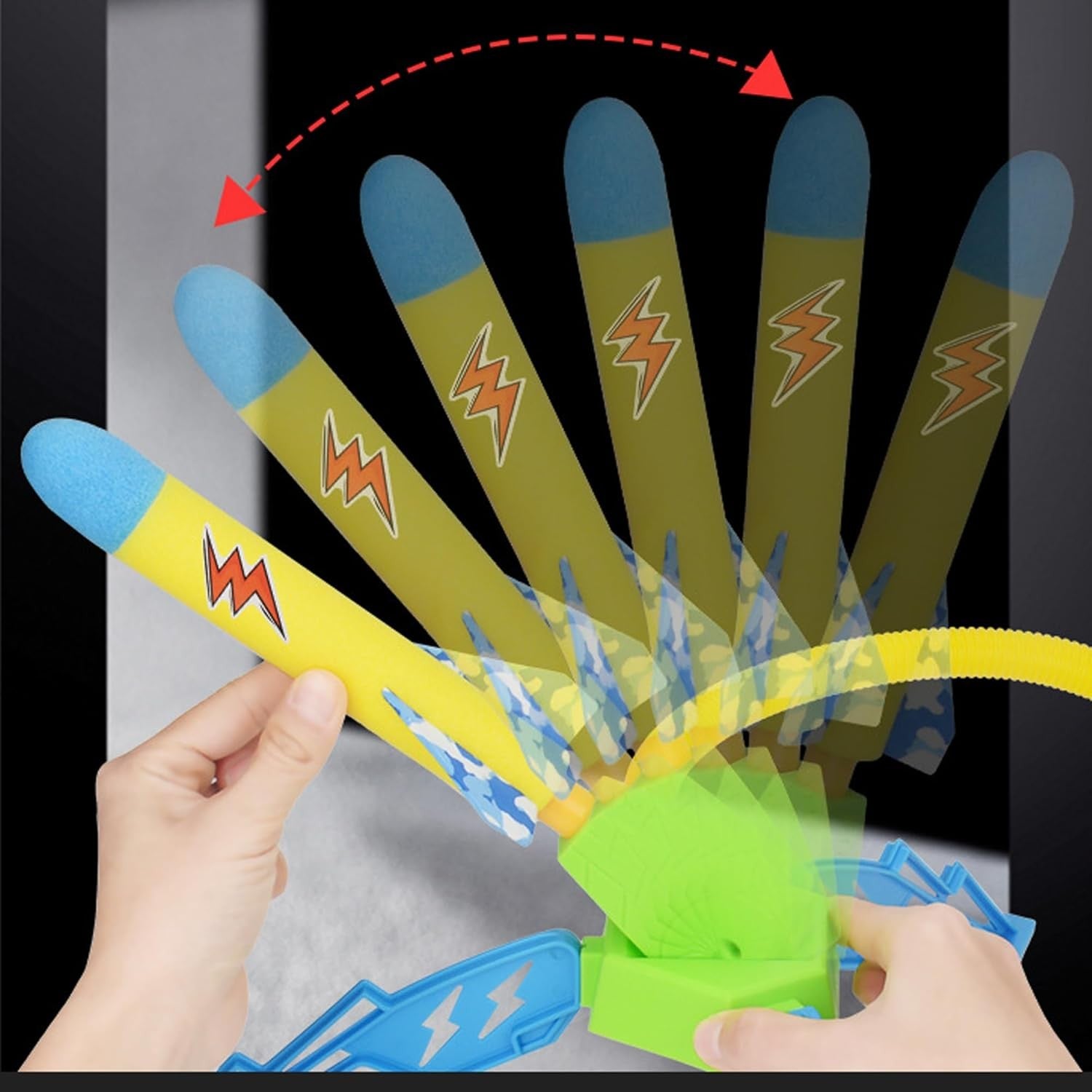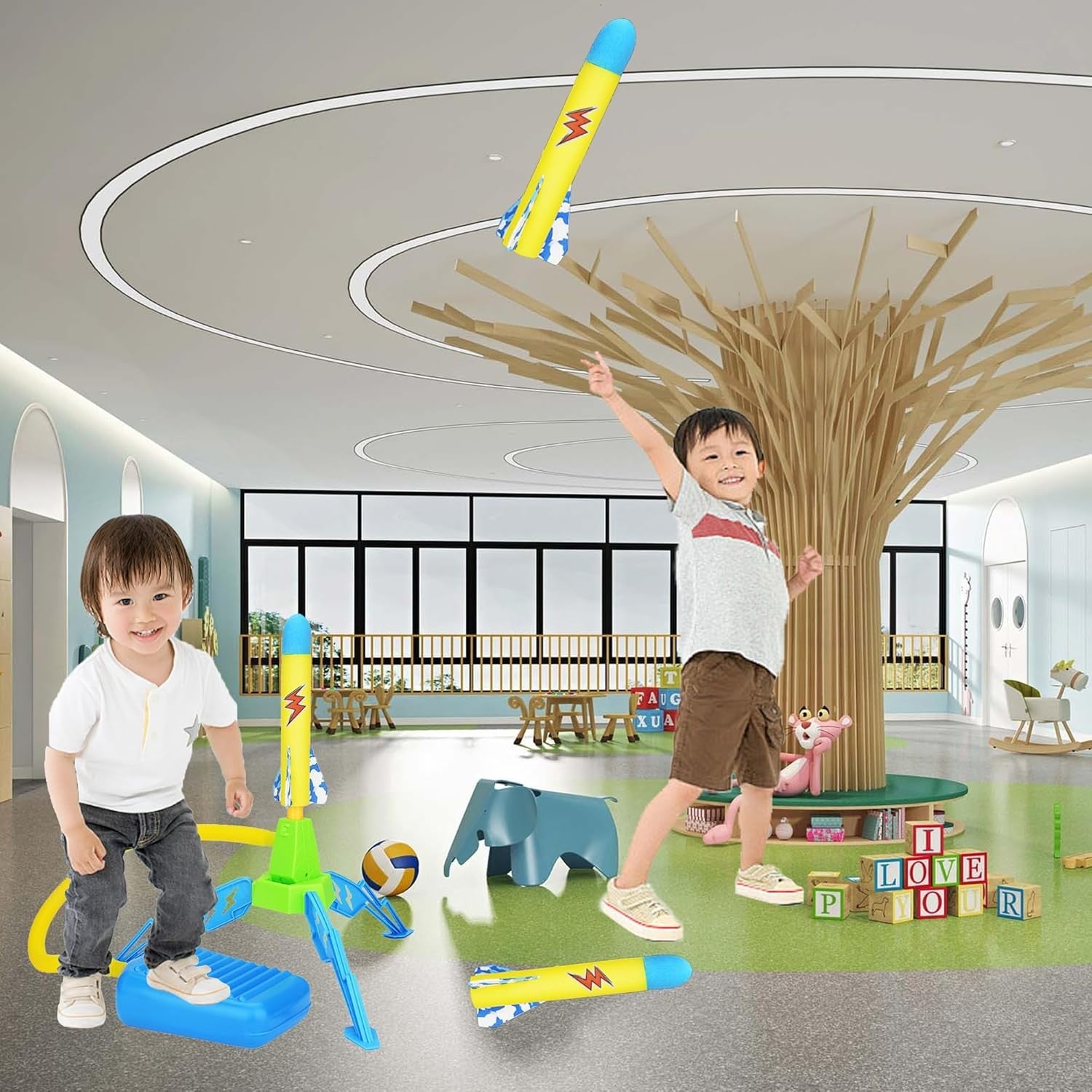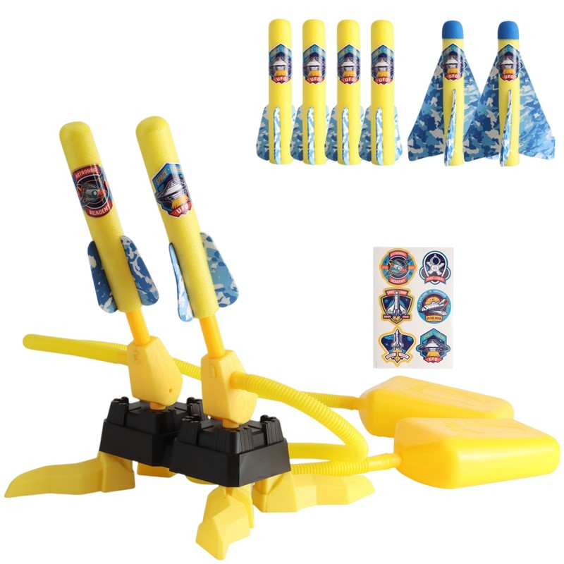 - INCLUDE 6 RACHETE – Jocul este compuns dintr-un lansator cu 1 pedala, ce permite un joc cu 2 copii, sau un copil si un adult si 3 rachete.