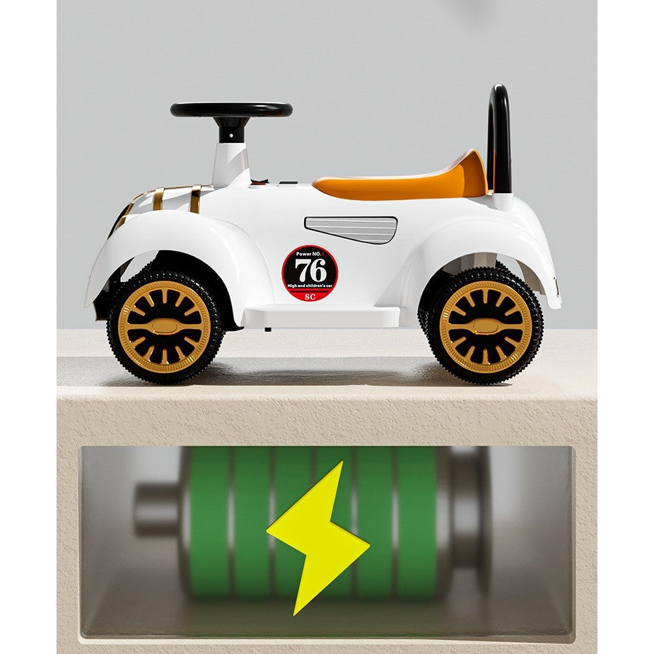 Mașinuță Electrică de Epocă pentru Copii | Telecomandă, Lumini și Sunet, Sistem Anti-Răsturnare, Alb