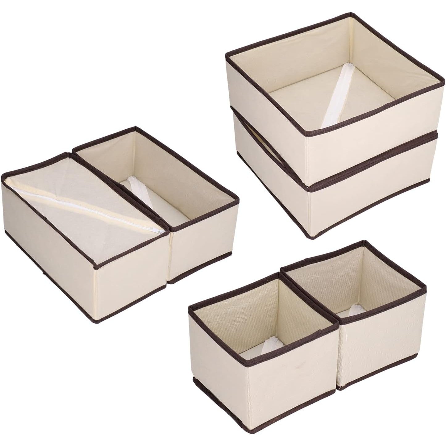 Organizator pentru Sertar, selexmo, 3 Marimi, pentru Lenjerie, Tricouri, Sosete, 6 Piese, Pliabil, Stivuibil, din Tesatura, Alb/Maro