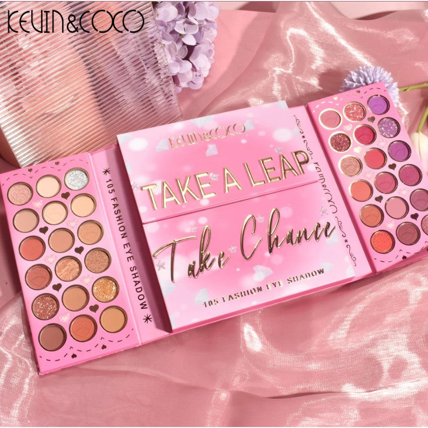 Paleta de Farduri Kevin&Coco, 105 Culori, Stil Pliabil, Conturing si Iluminator incluse, Dreptunghiulara, Fara Sulfati, Pudra Compacta, 18.7 x 17.2 x 2.7 cm, 109 g, multicolor