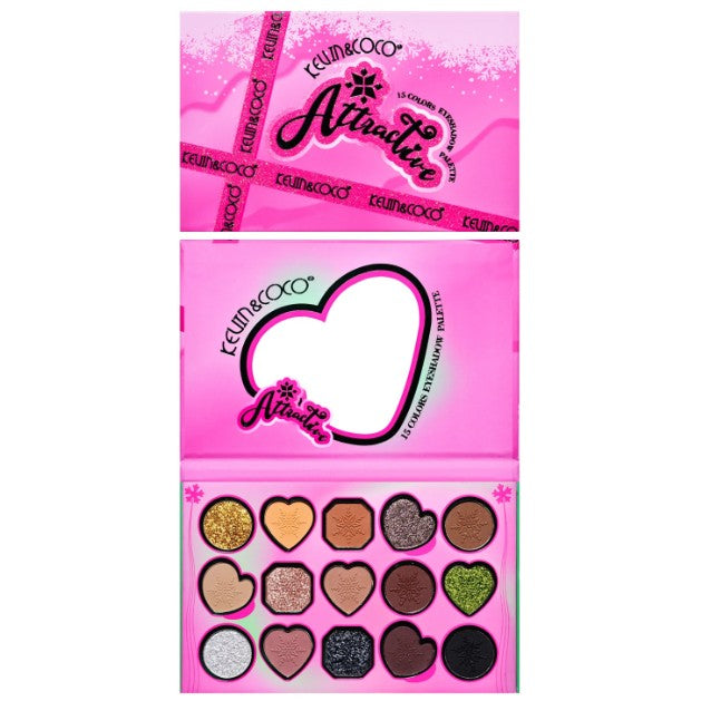 Paleta de Machiaj, KEVIN & COCO, Atractive, Farduri de Pleoape, 15 Culori, Model B, 16.5x10.8x1.5 cm, Multicolor