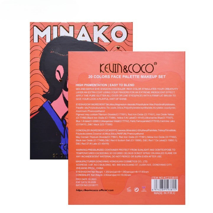 Paleta de Machiaj, KEVIN&COCO, 20 Culori Orange Girl, Fard de Pleoape si Blush, Portocaliu