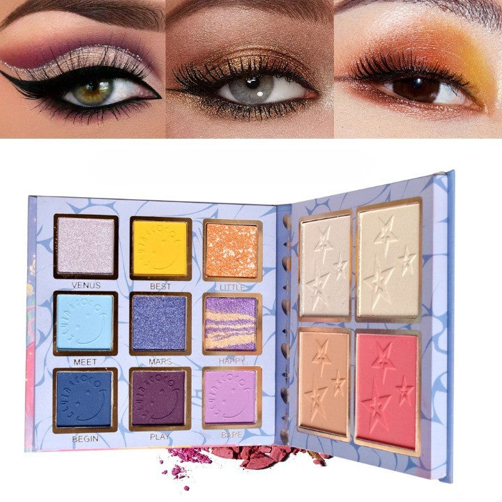 Paleta Farduri Flippy, Kevin&Coco Varianta 1, 13 culori, Iluminator si Blush Inclus, Patrata, 120 g, 10.9 x 10.9 x 1.7 cm, Valabilitate 3 Ani, Multicolor