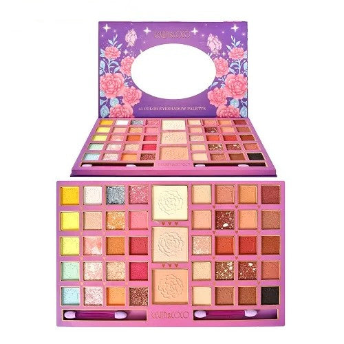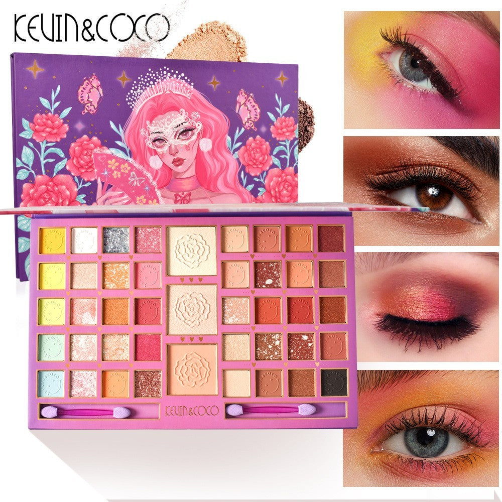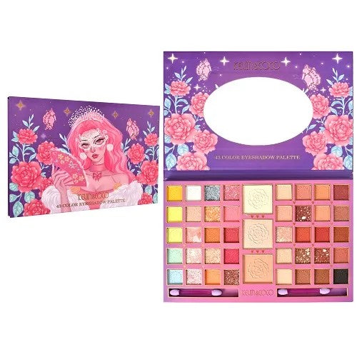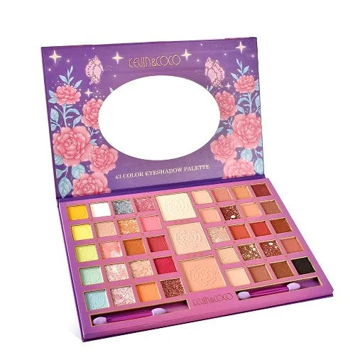 Paleta Farduri Flippy, Kevin&Coco Varianta 1, 43 Culori, Farduri Mate si Sidefate, Pudra si Iluminator, 2 Aplicatoare Incluse, Dreptunghiulara, 400 g, 27.3 x 17.8 x 1.3 cm, Valabilitate 3 Ani, Multicolor