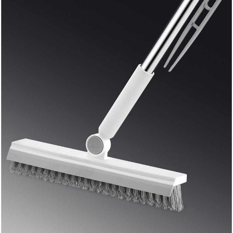 Perie de Curatare pentru Podele si Rosturi, selexmo, Lungime Maner 105 cm, Capat Pivotant 180 Grade, Peri din PP, Otel si Plastic, Cleste pentru Scame si Par Inclus, Alb