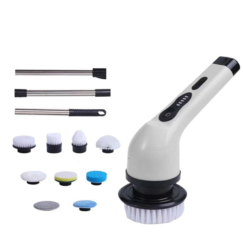 Perie Electrica de Curatare, selexmo, pentru Gresie, Baie, Bucatarie, 25x20x9.5 cm, cu 9 Capete, Maner Extensibil Detasabil 84-127cm, Incarcare USB-Type C, Rotire 360 de Grade, 3000 mAh, Culoare: Alb