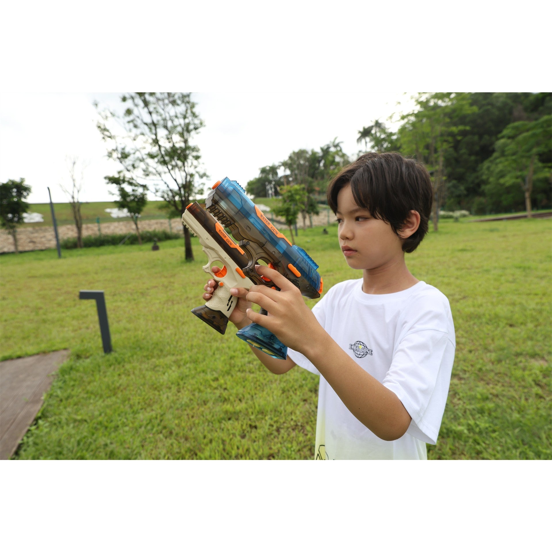 Rază de acțiune impresionantă – Poate trage jeturi de apă până la 9 metri, perfect pentru lupte la distanță.