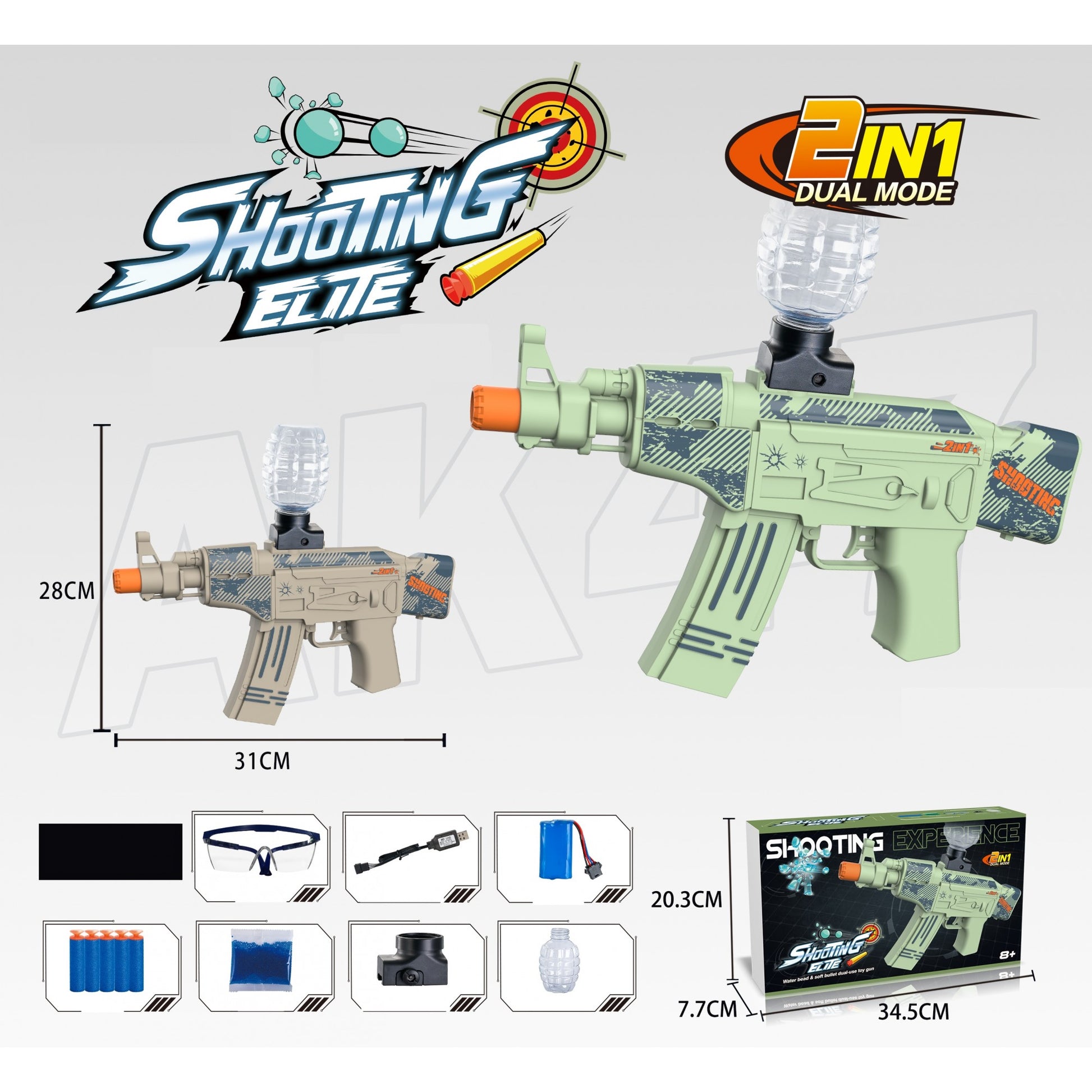 Pistol electria cu bile de hidrogen de gel, ochelari de protectie, 5000 de bile incluse, cablu de incarcare, 28x31 cm, AK47, verde