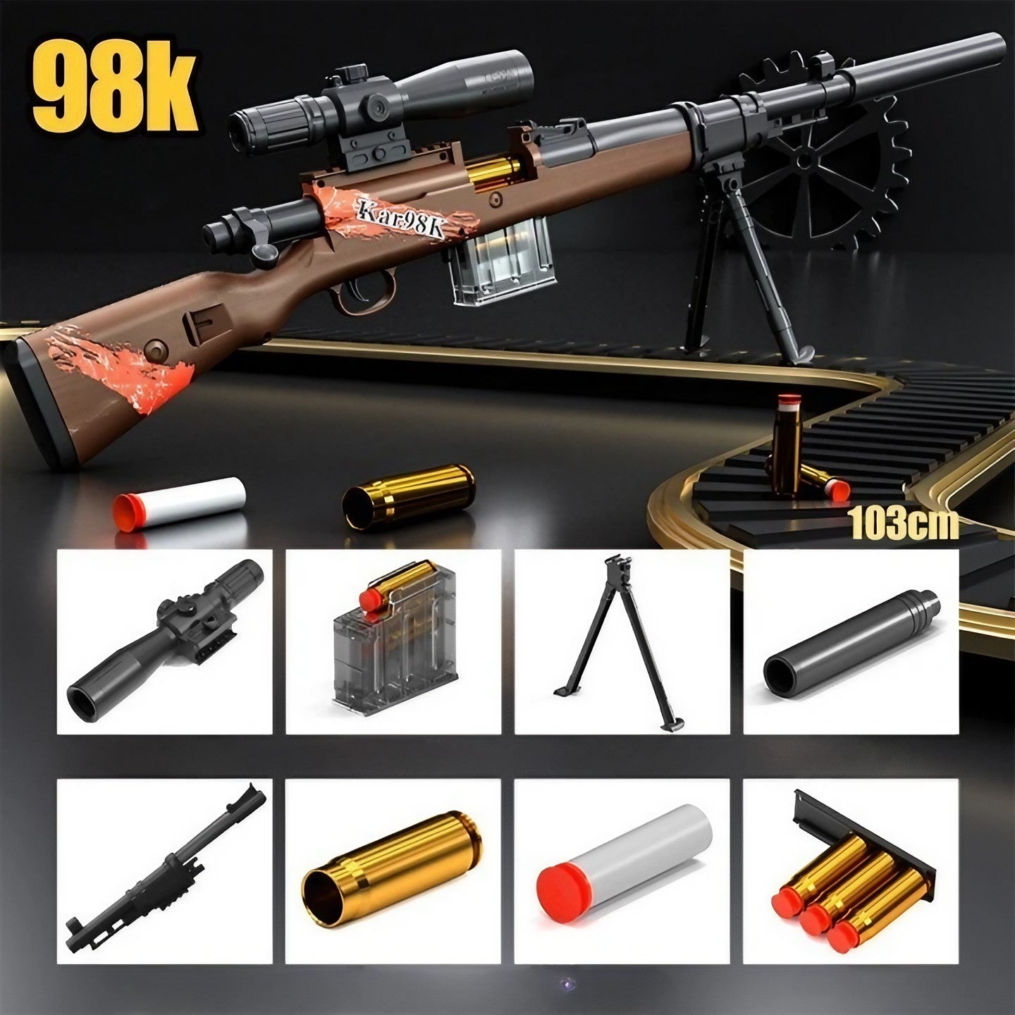 Transformă fiecare zi într-o aventură memorabilă cu puşca de jucărie 98K! Comandă acum și oferă-i copilului tău ocazia de a explora lumea fascinantă a jocurilor de strategie și a imaginației!