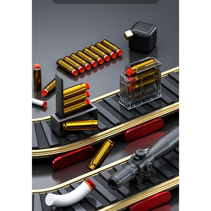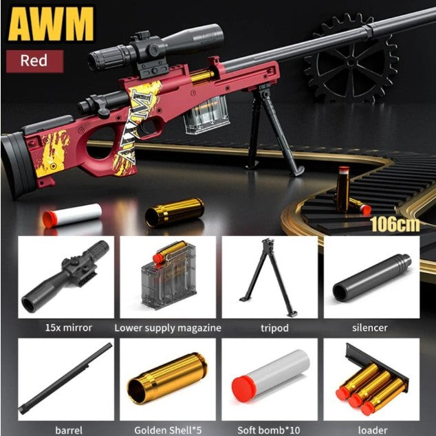 Pusca de Jucarie AWM Ultrarealista, Manuala, cu Luneta, 10 de Proiectile din Spuma Moale, 5 Cartuse, 106 cm, 14 ani+, Rosu