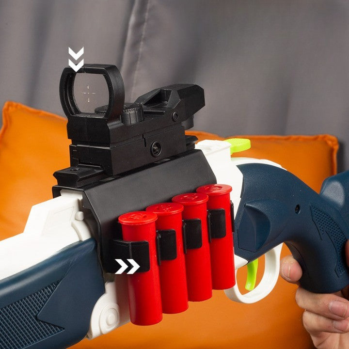 Ușor de Utilizat: Designul simplu permite copiilor să învețe rapid cum să folosească pușca, încurajând joaca activă și competiția amicală cu prietenii.