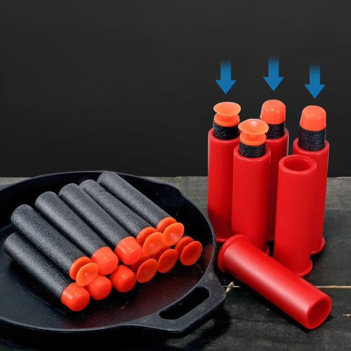 Set Complet: Pușca vine echipată cu 10 proiectile și 5 cartușe, asigurând ore întregi de distracție. Proiectilele sunt fabricate din material sigur, astfel încât să poată fi utilizate în siguranță.