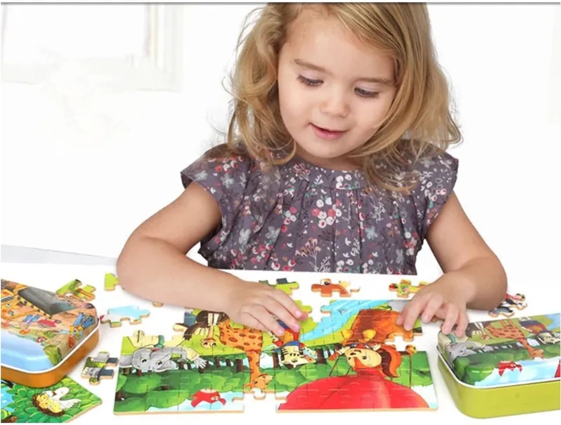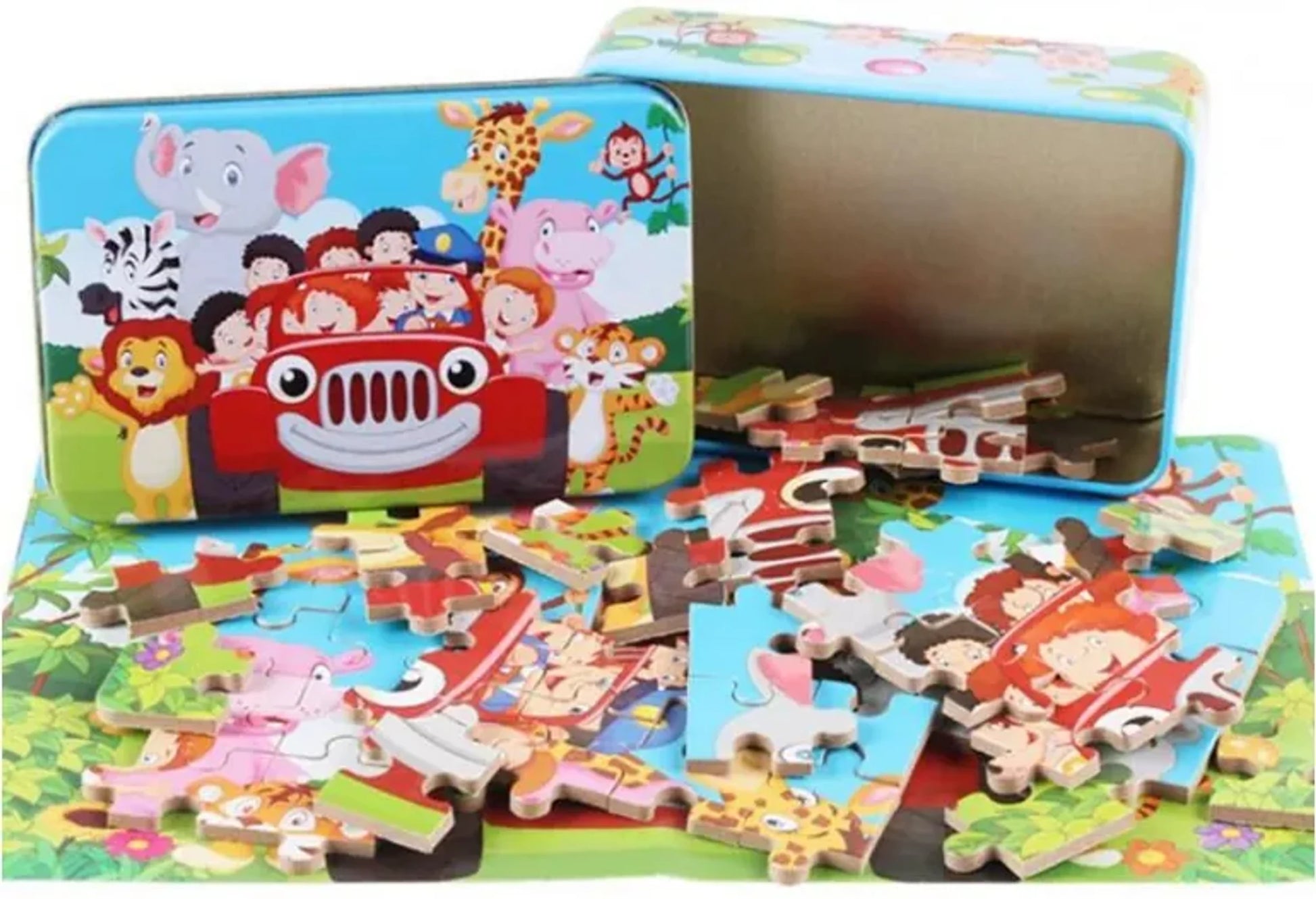 Puzzle 60 de Piese din Lemn in Cutie Metalica