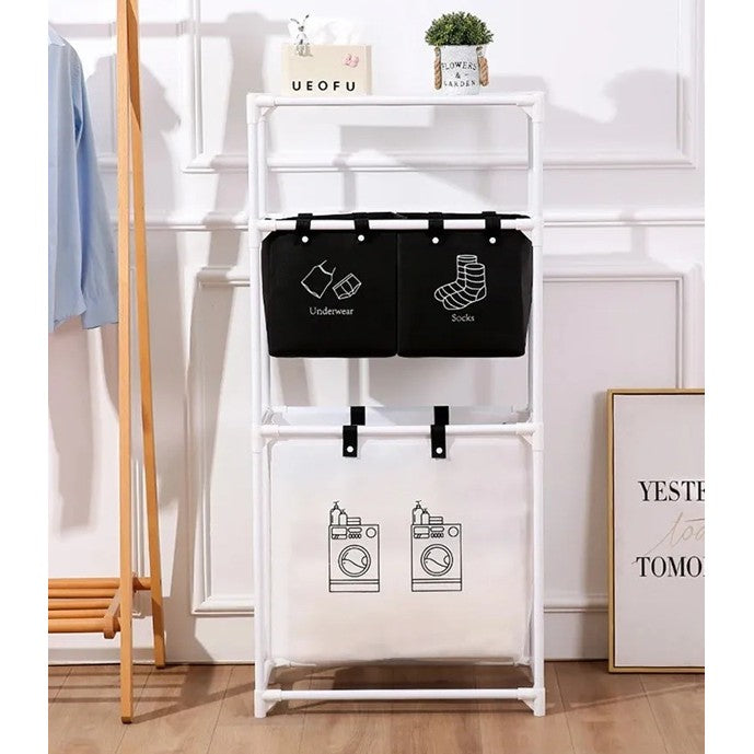 Raft/Cos Depozitare Haine Murdare selexmo – 3 Rafturi, 3 Cosuri, Alb