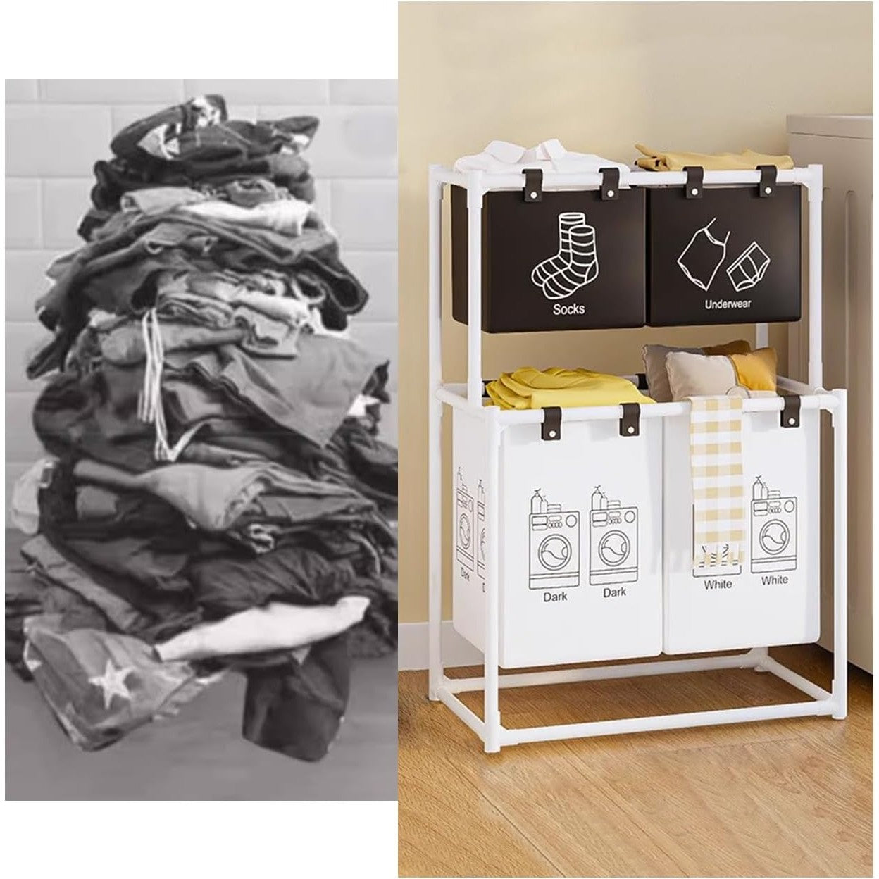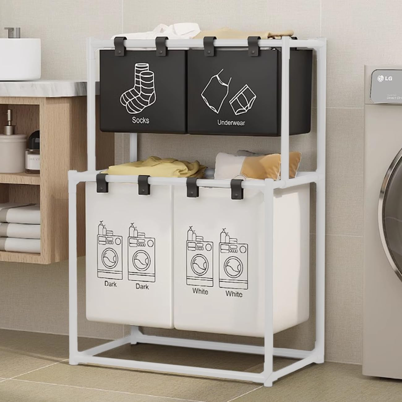Raft/Cos Depozitare Haine Murdare selexmo – 2 Etaje, 4 Coșuri, Alb