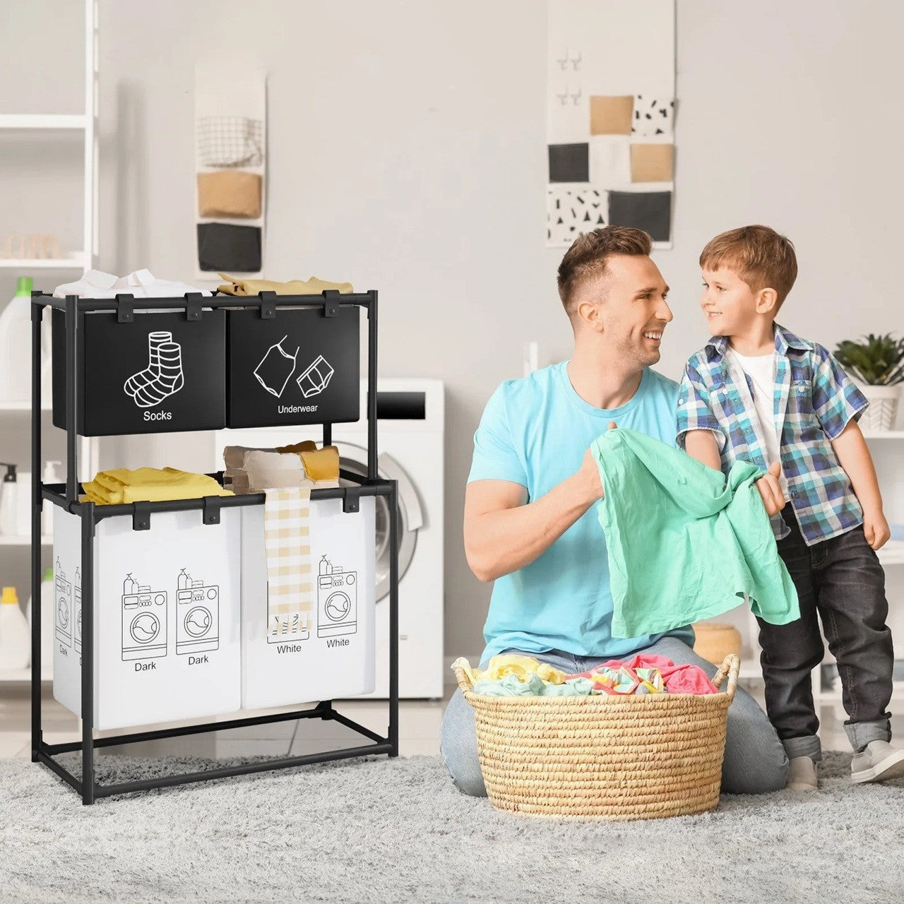 Raft/Cos Depozitare Haine Murdare selexmo – 2 Etaje, 4 Coșuri, Negru
