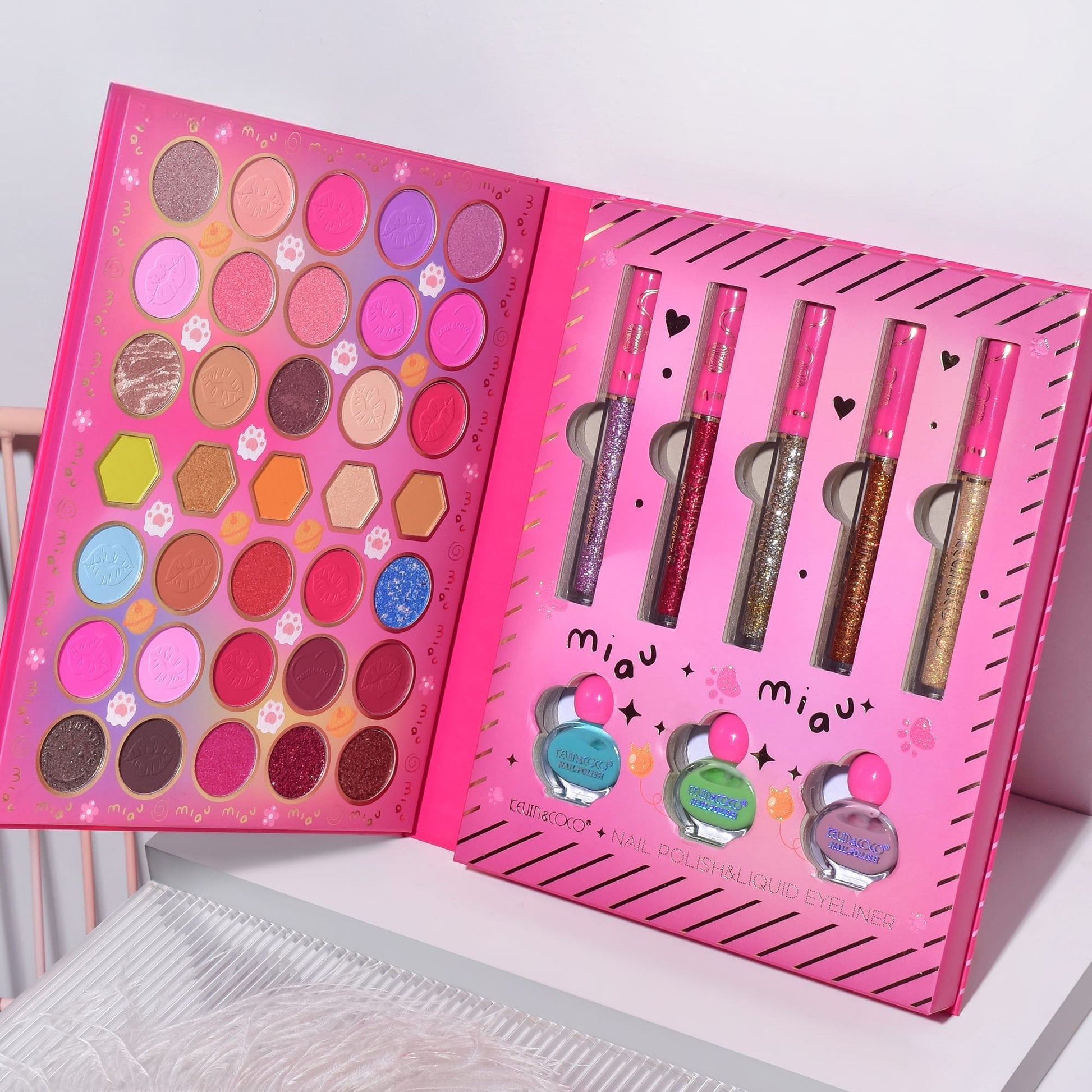 Set 9 Produse de Machiaj, KEVIN & COCO, Cool Girl and Cat, 35 de culori, 21.5 x 16.8 x 3 cm