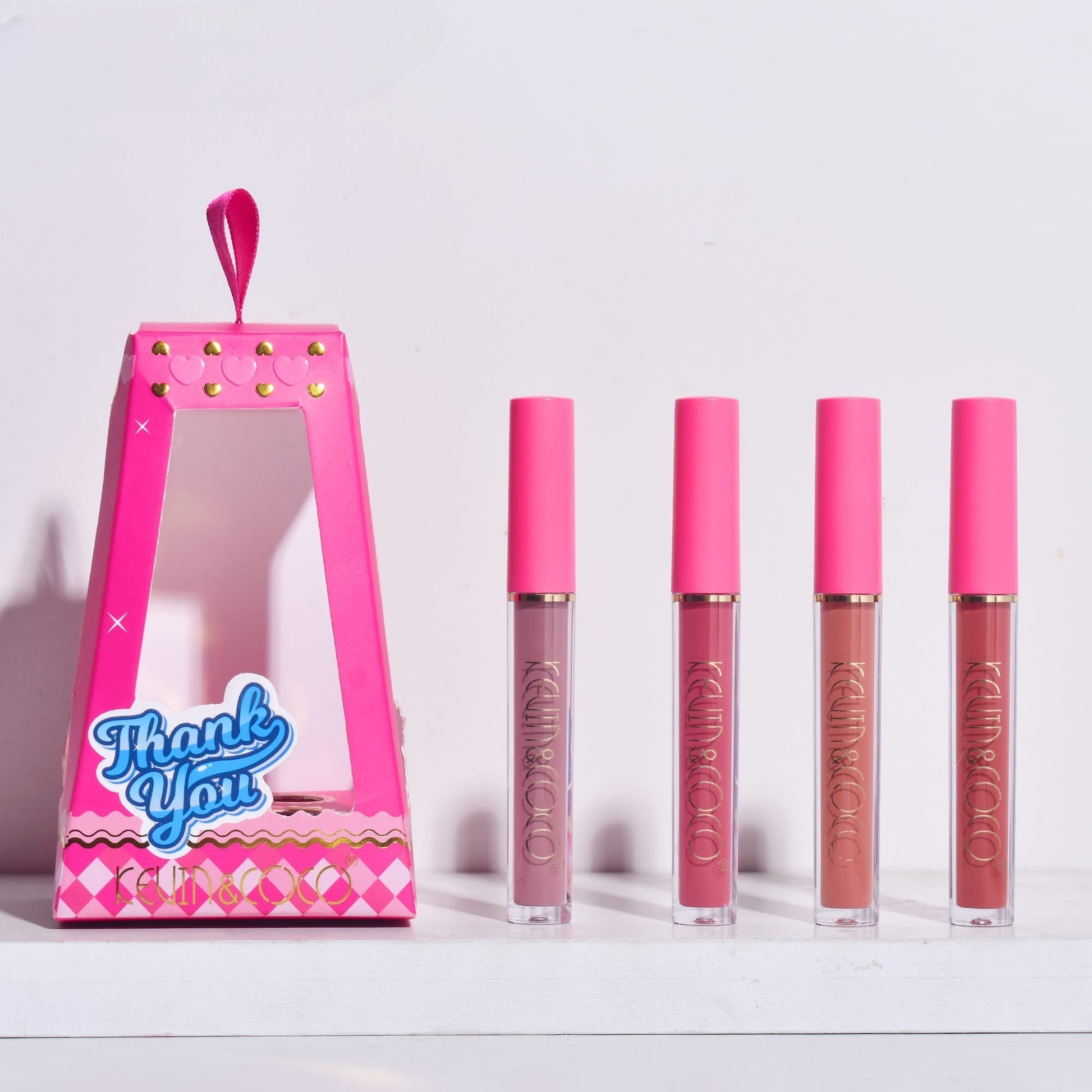 Set de Buze, KEVIN & COCO, Cloud Bubble, 4 Lip Gloss-uri, 15.1 x 8.1 x 2 cm, Roz/Nude
