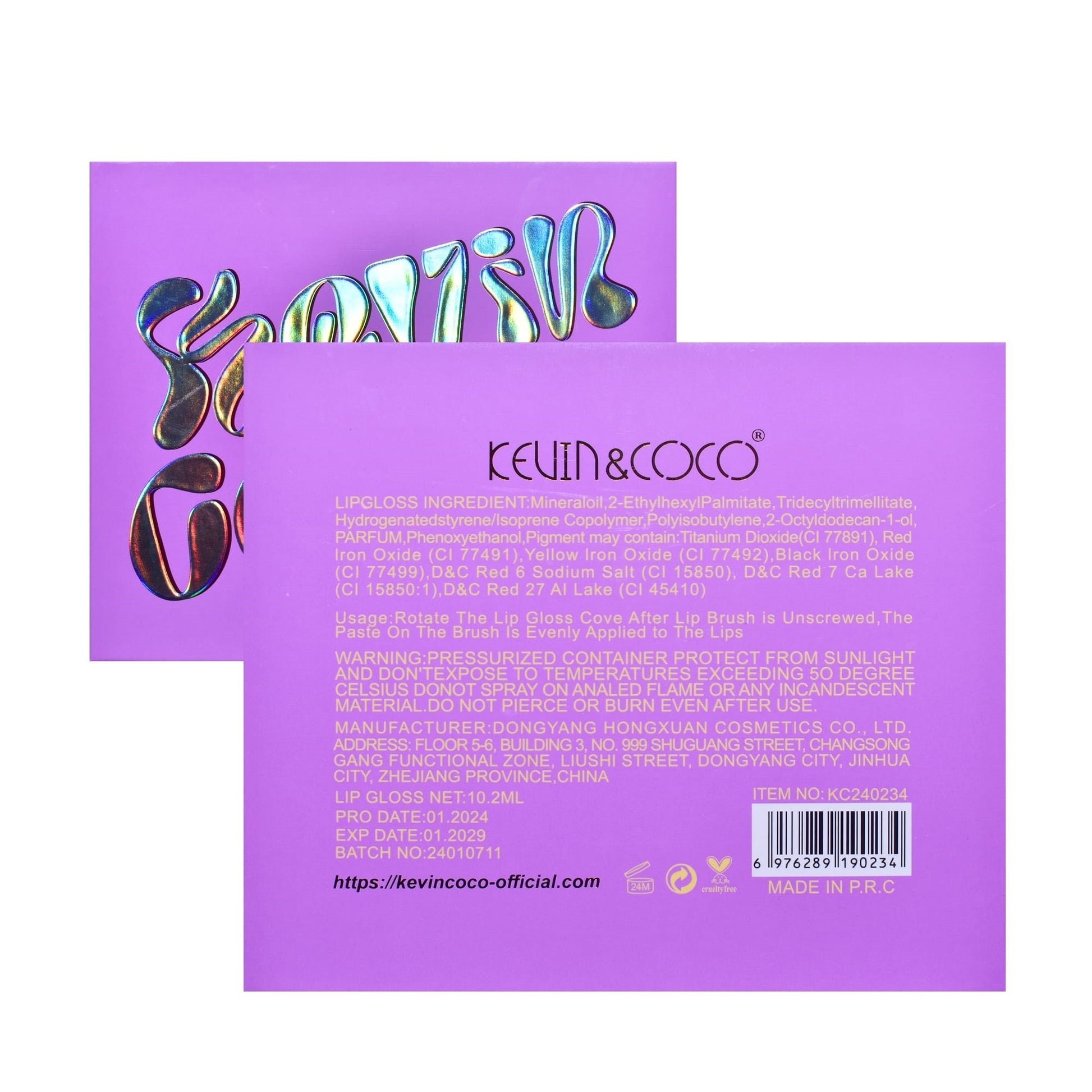 Set de Buze, KEVIN COCO, Violet Girl, 6 Lip Gloss-uri, 17 x 14.8 x 2.9 cm, Roz/Rosu/Mov