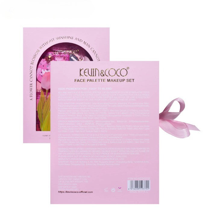 Set de Machiaj, KEVIN & COCO, 22 Culori, Model Lalele, 2 Palete de Farduri, 2 Lip Gloss-uri, 2 Lip Stick-uri, 1 Oglinda Inimioara, 15.7 x 21 x 4 cm, Multicolor
