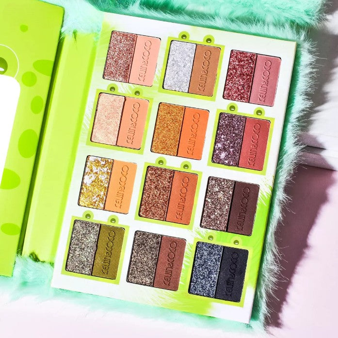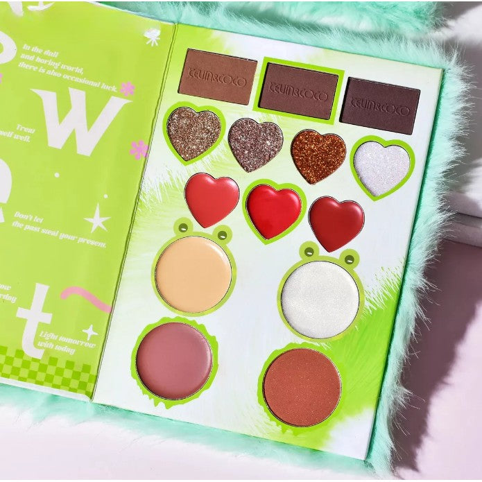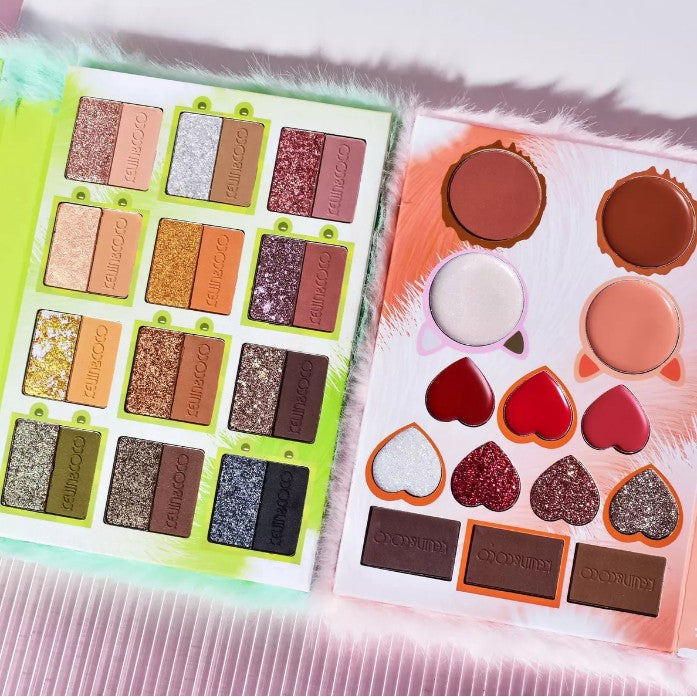 Set de Machiaj Kevin&Coco, 38 culori, Fard Ochi, Iluminatoare si Contouring, Husa Pufoasa, Model Broscuta, 17.3x12.5x5 cm, Multicolor