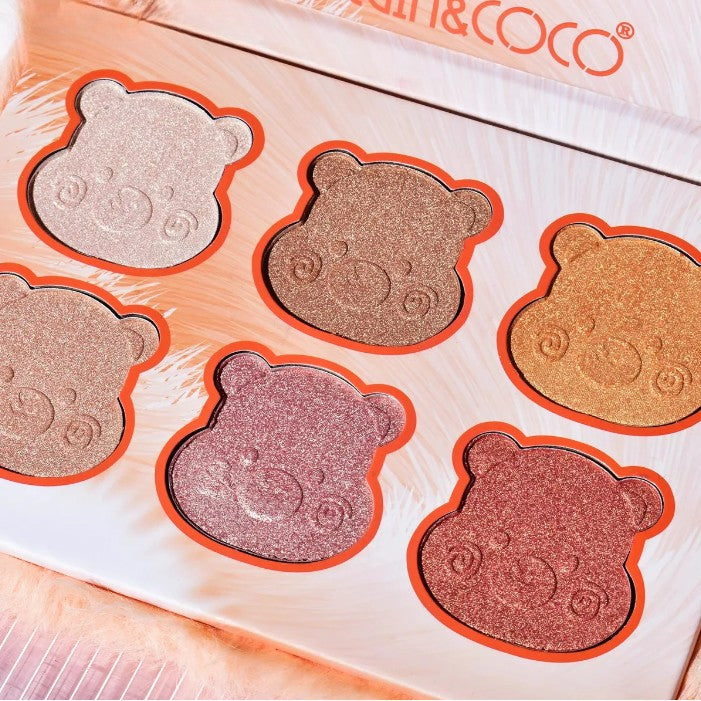 Set de Machiaj Kevin&Coco, 6 culori Iluminator, Husa Pufoasa, Model Ursulet, 17.3x12.5x5 cm, Multicolor