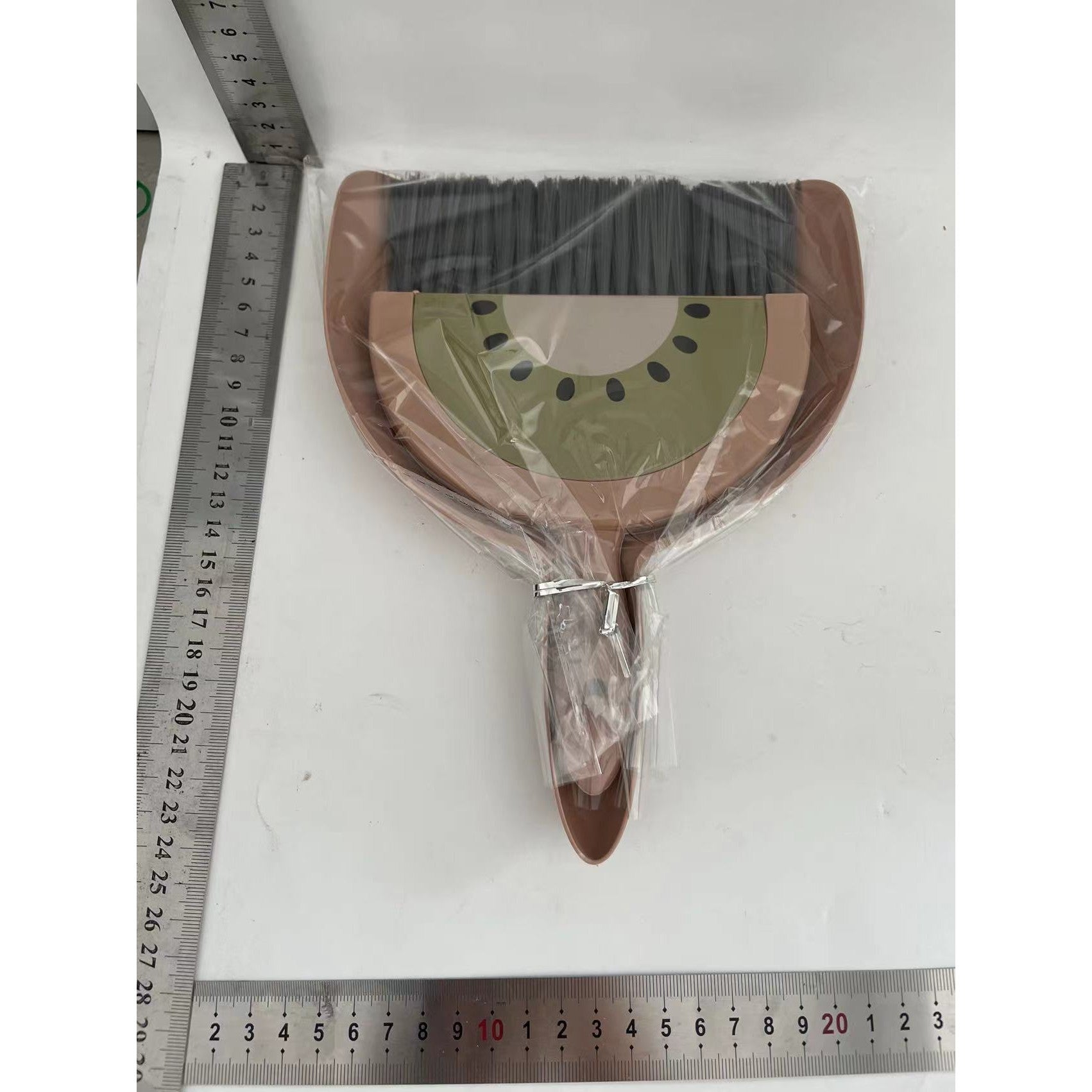 Set Mini Matura si Faras, selexmo, LITTLE CLEANER, Uz Casnic, pentru Birou, Bucatarie, Casa, Model Kiwi, 23 x 18 cm Maro-Verde