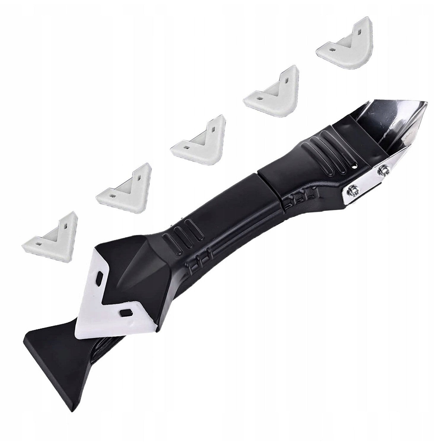 Set Racleta pentru Indepartare Adeziv, Racleta pentru Silicon si Lipici, 5 Capete din silicon, Dimensiune Inchisa 18.8 x 4 x 2.8 cm, Metal, Negru