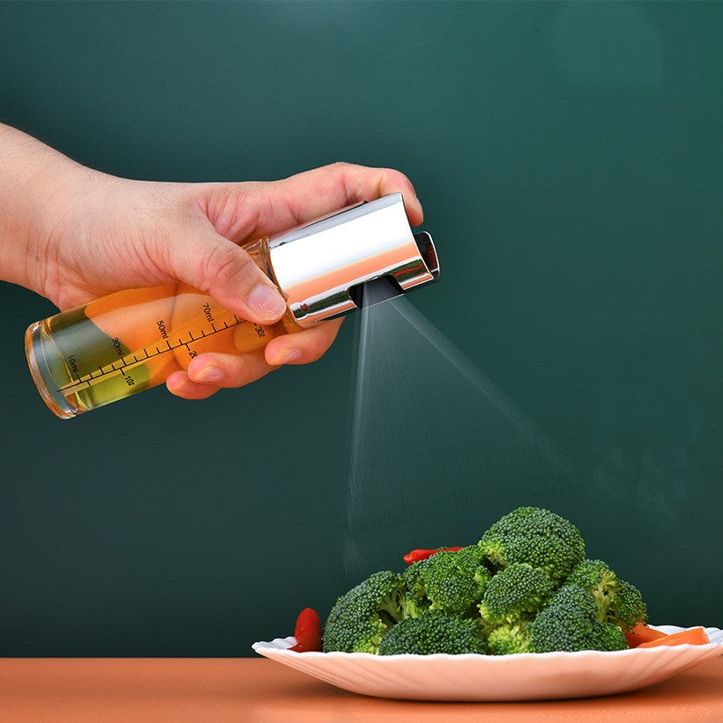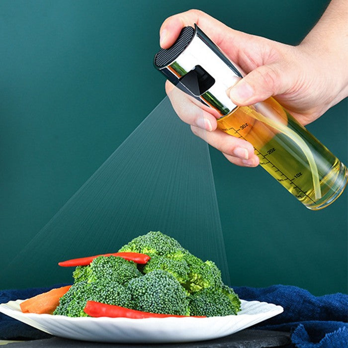 Pulverizator ulei pentru gatit, sticla cu gradatii, 100 ml, inox si sticla, ideal pentru ulei de masline, otet sau sos de soia