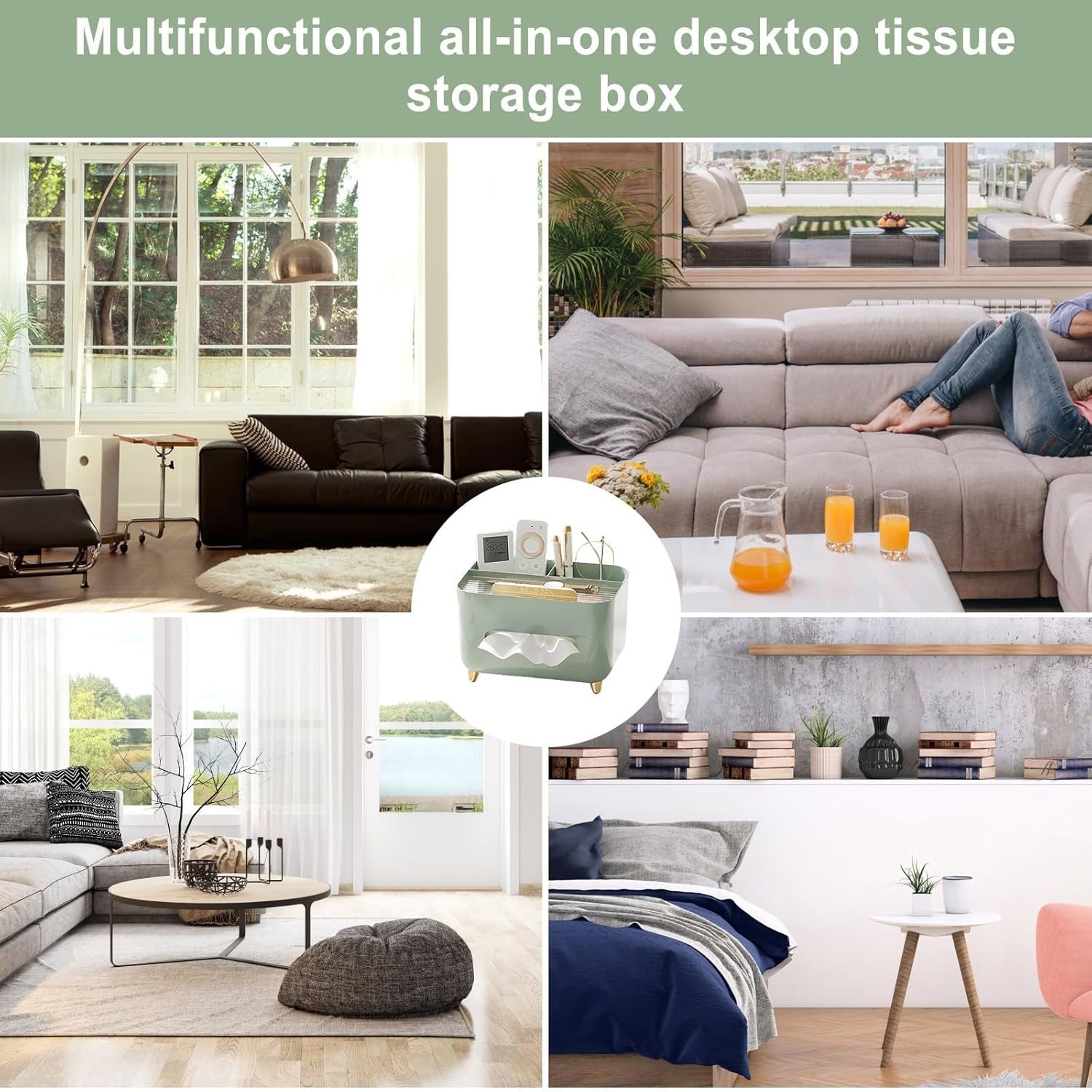Suport pentru Servetele, selexmo, Cutie Multifunctionala, Design Minimalist, ABS, cu Suport pentru Obiectele Personale, pentru Birou, 21x15x13 cm, Verde