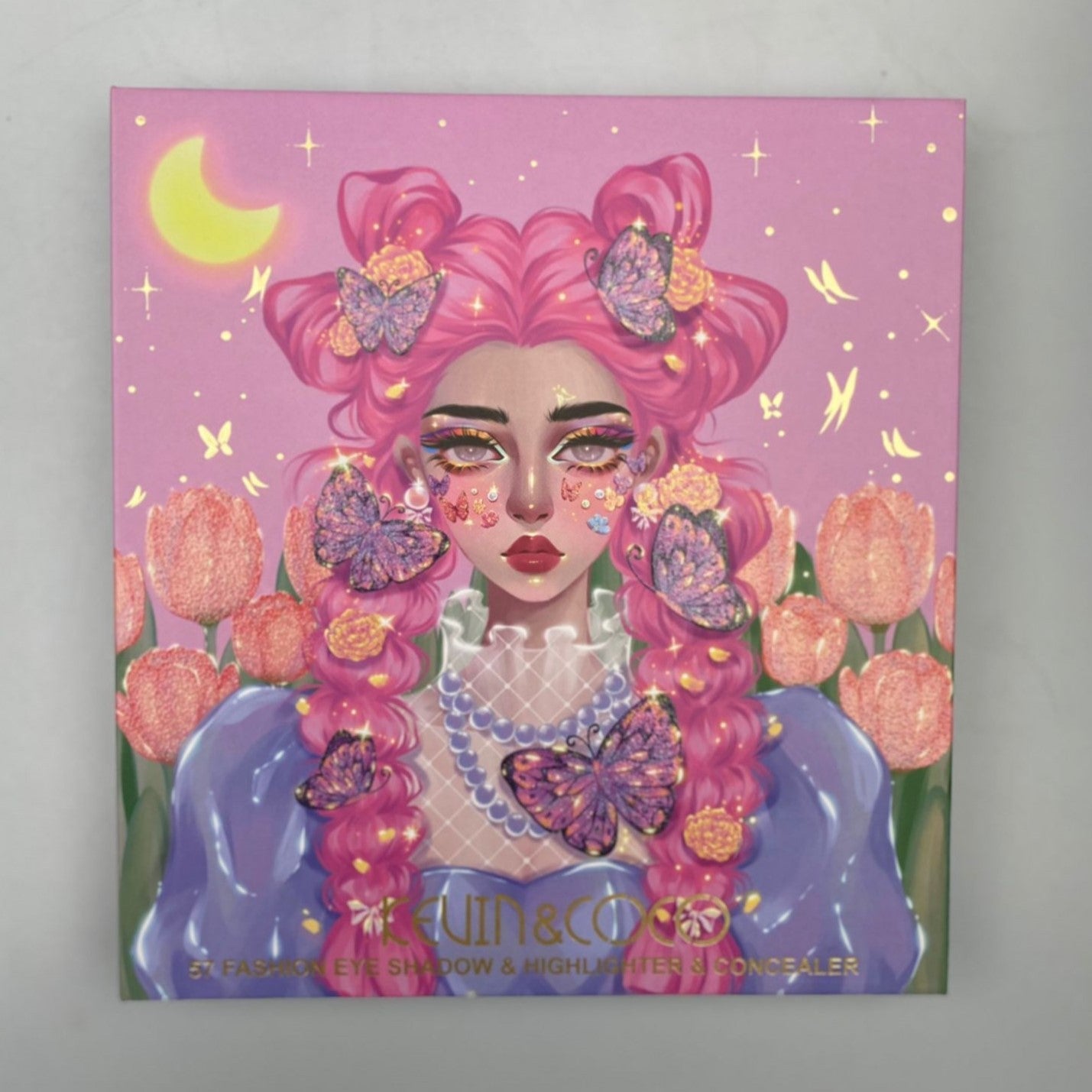 Trusa de machiaj, paleta Kevin&Coco cu 53 de farduri, iluminator, corector si rujuri, Flippy