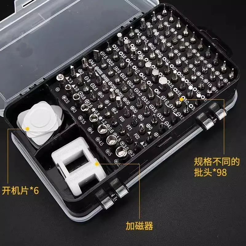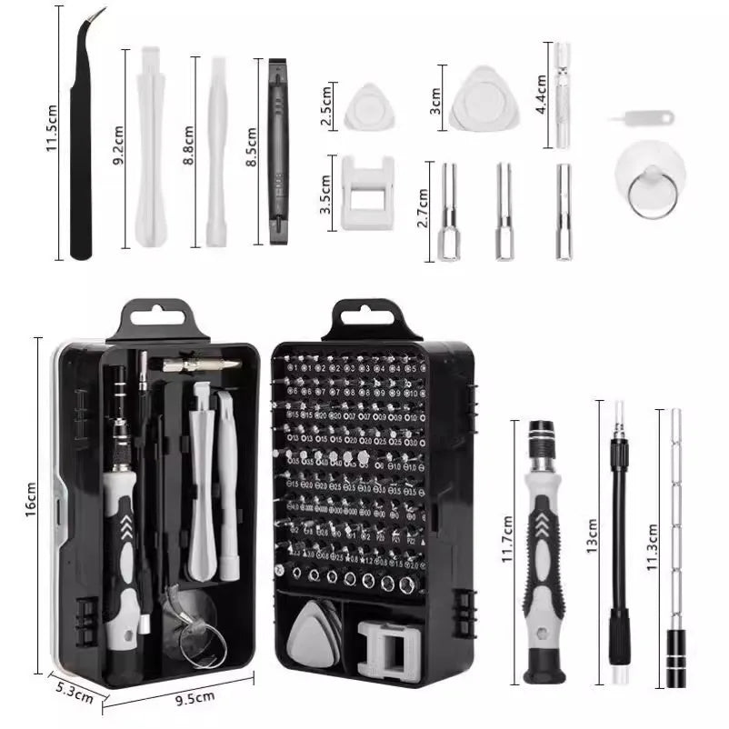 Setul de șurubelnițe 115-in-1 oferă soluția ideală pentru reparații rapide și precise, transformându-te într-un expert chiar la tine acasă.